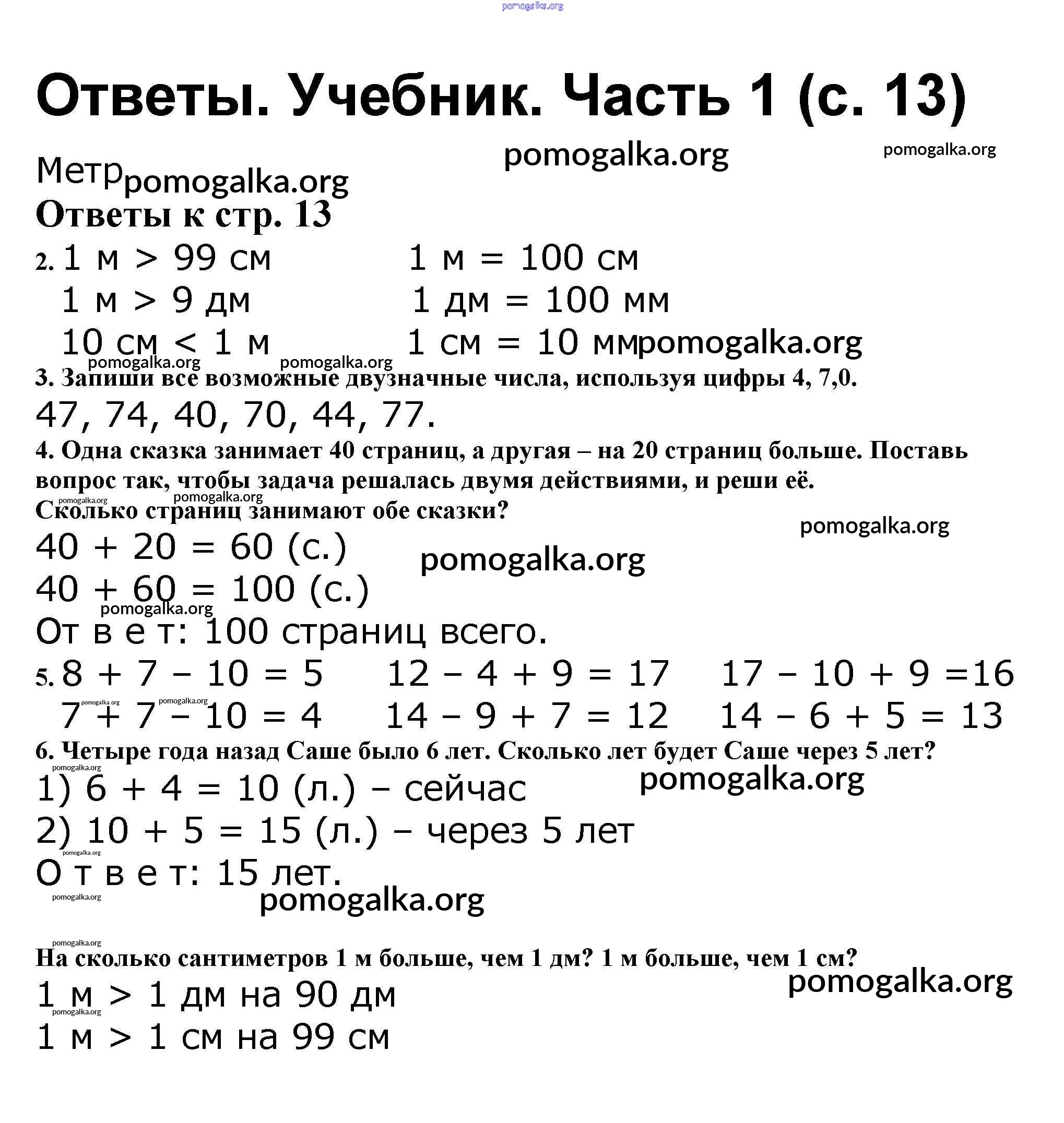 Готовые ответы - Математика 2 класс Моро М.И. - часть 1. страница 13