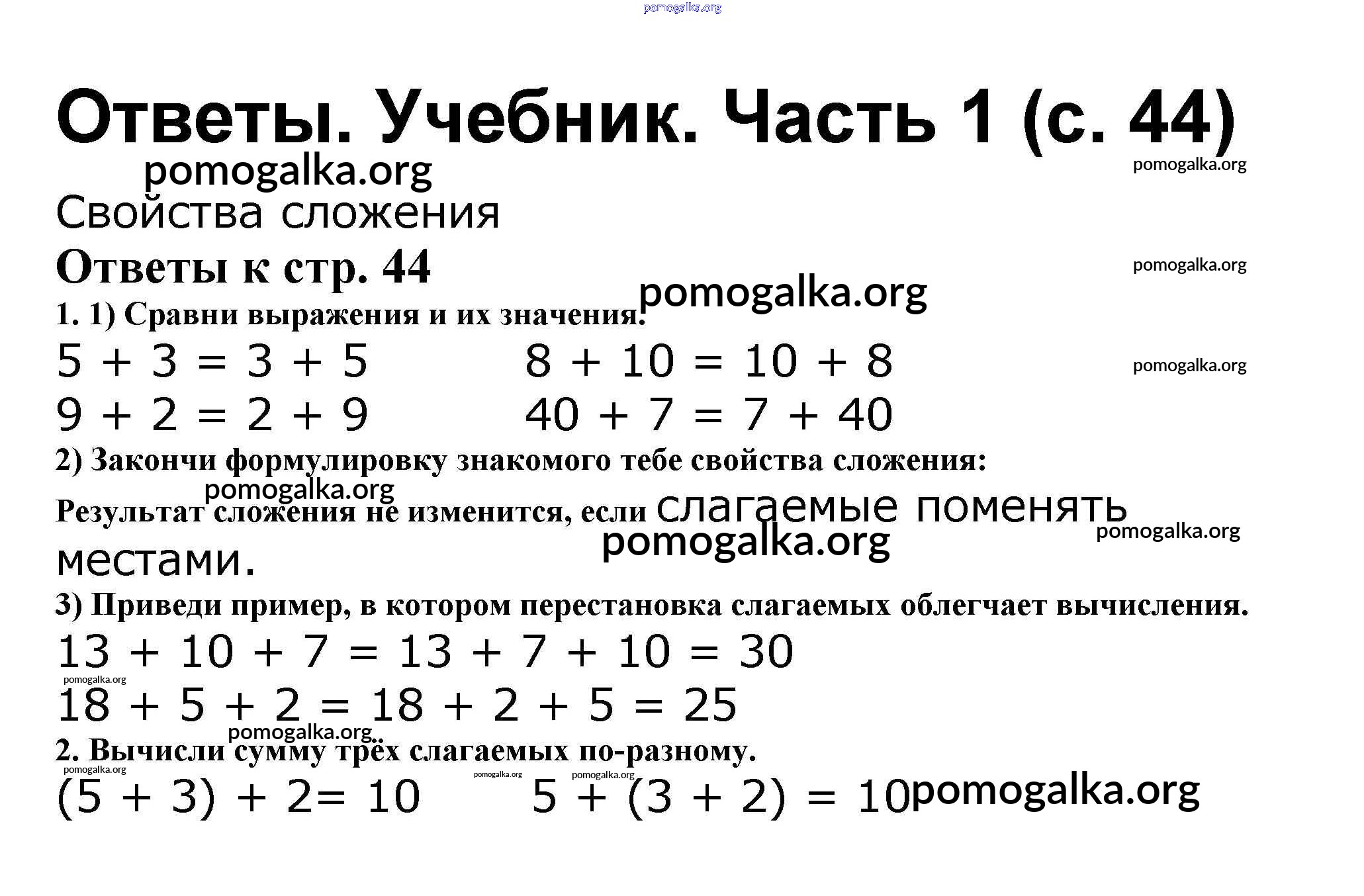 Готовые ответы - Математика 2 класс Моро М.И. - часть 1. страница 44