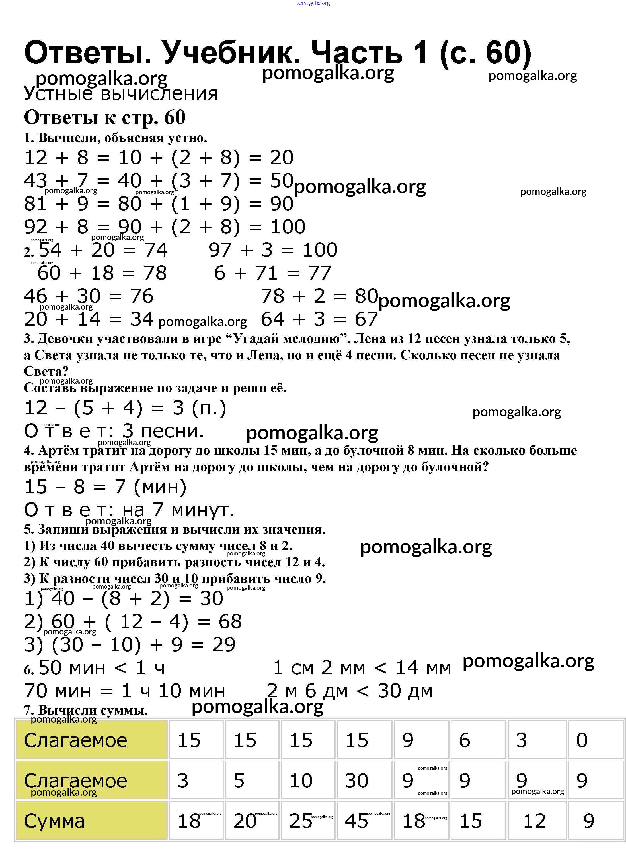 Готовые ответы - Математика 2 класс Моро М.И. - часть 1. страница 60