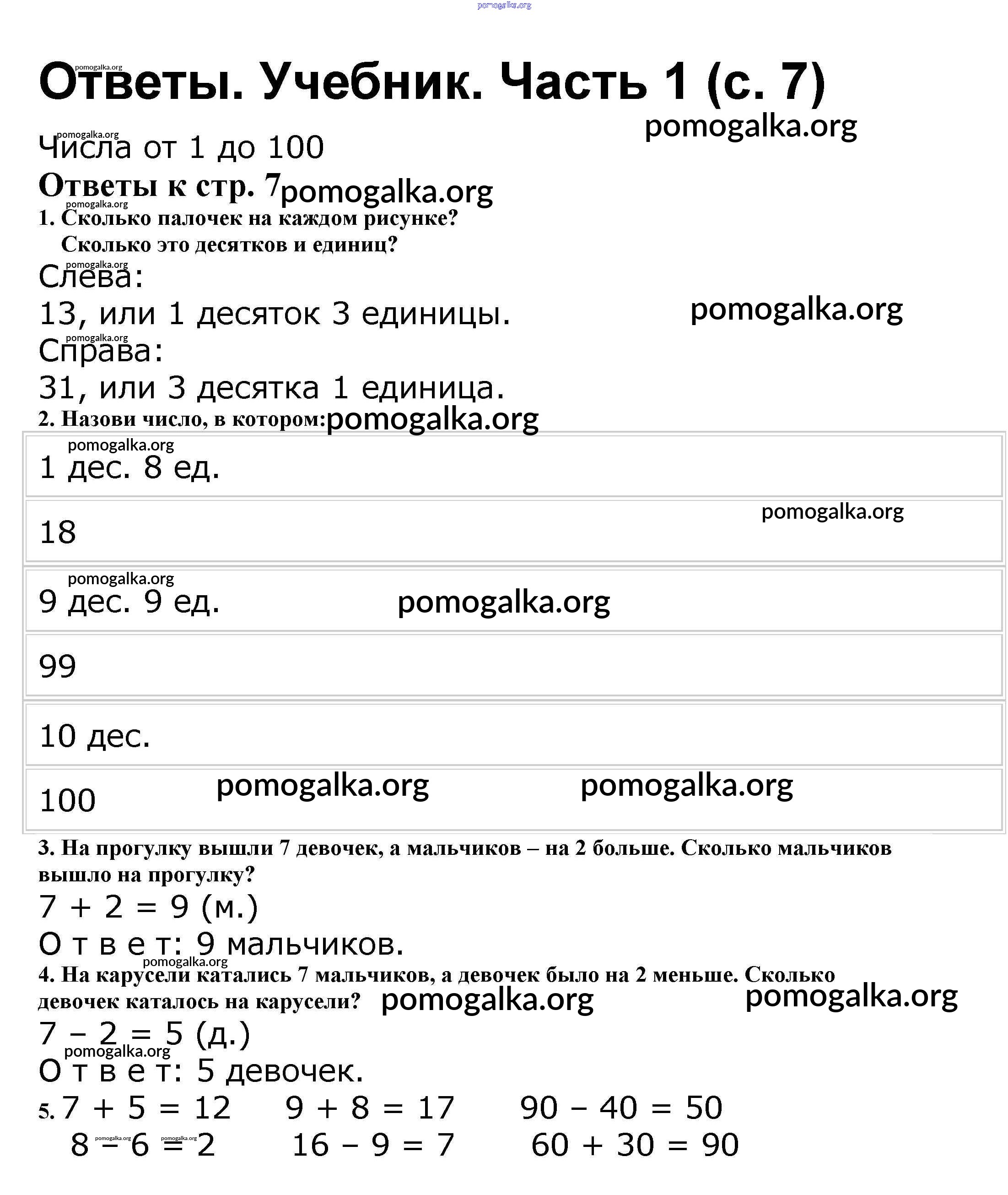 Готовые ответы - Математика 2 класс Моро М.И. - часть 1. страница 7