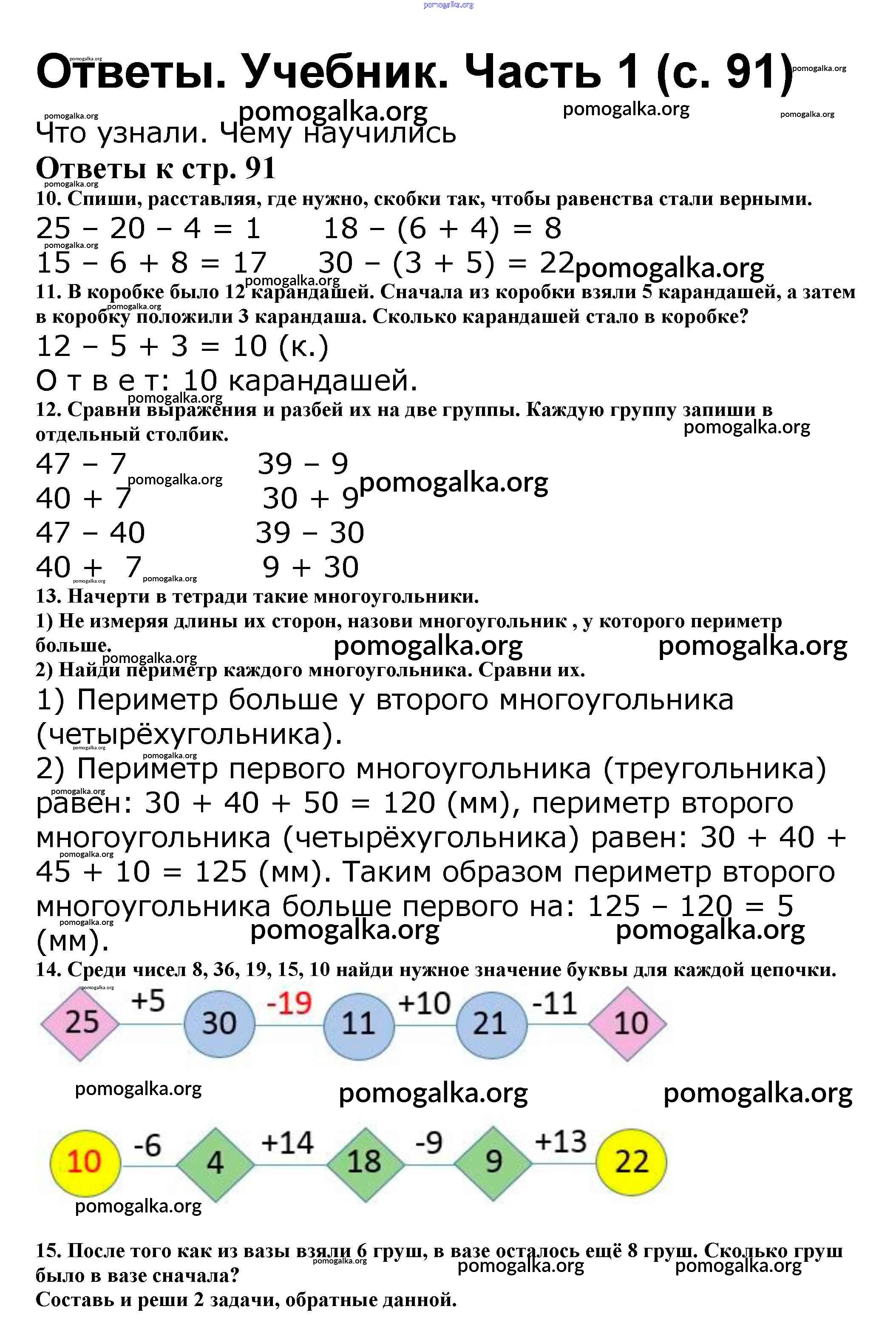 Готовые ответы - Математика 2 класс Моро М.И. - часть 1. страница 91