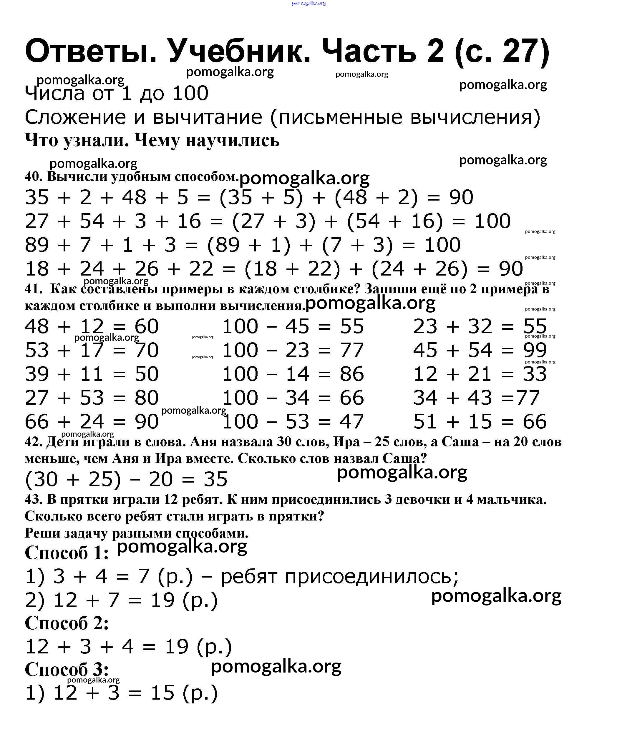 Готовые ответы - Математика 2 класс Моро М.И. - часть 2. страница 27