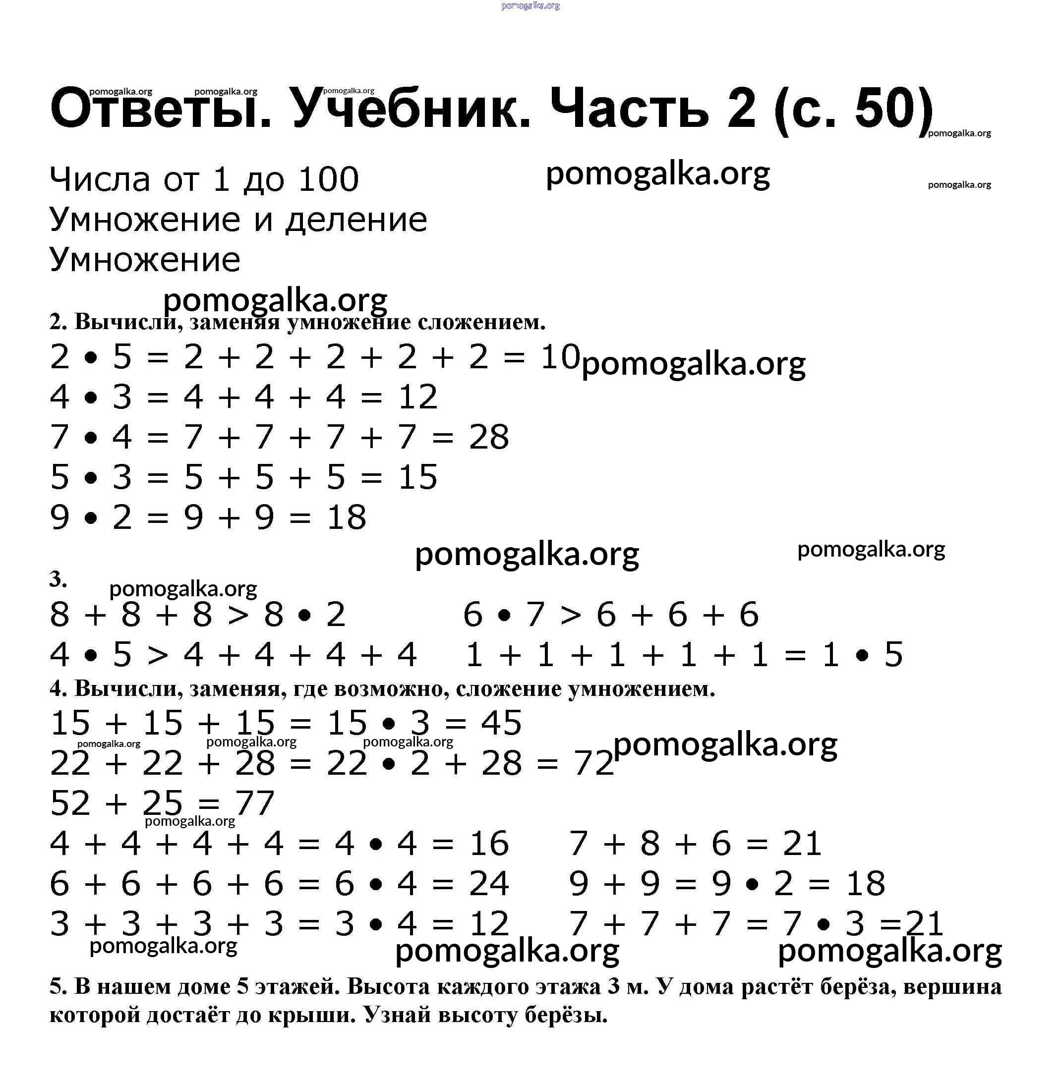 Готовые ответы - Математика 2 класс Моро М.И. - часть 2. страница 50