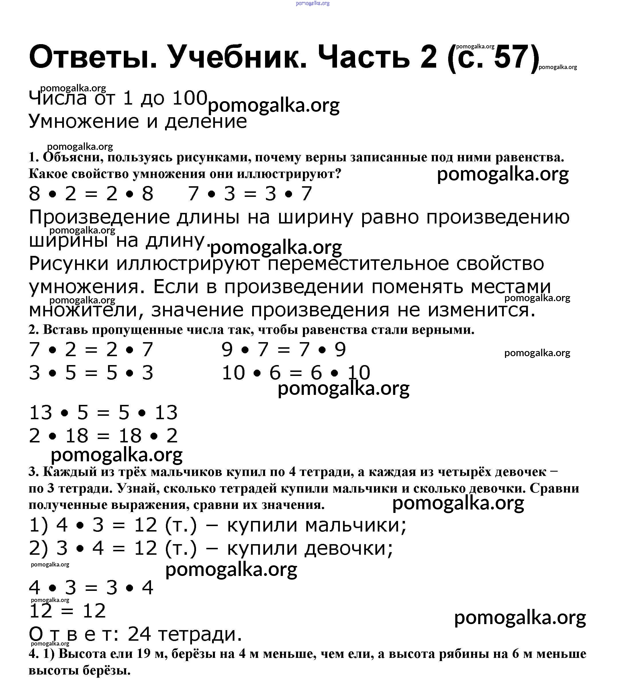 Готовые ответы - Математика 2 класс Моро М.И. - часть 2. страница 57