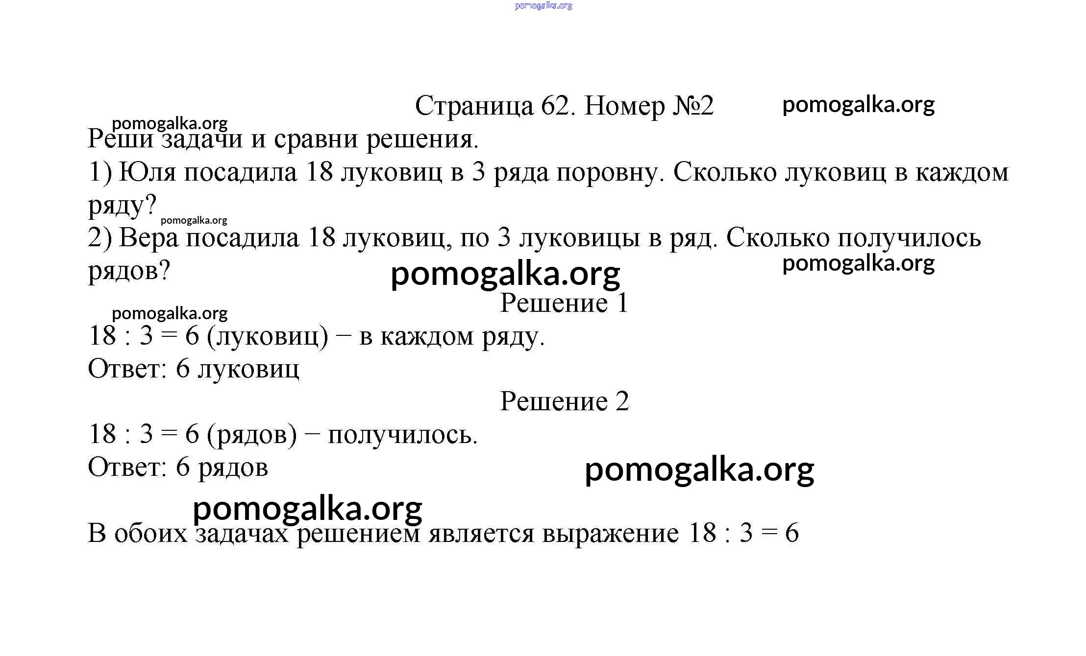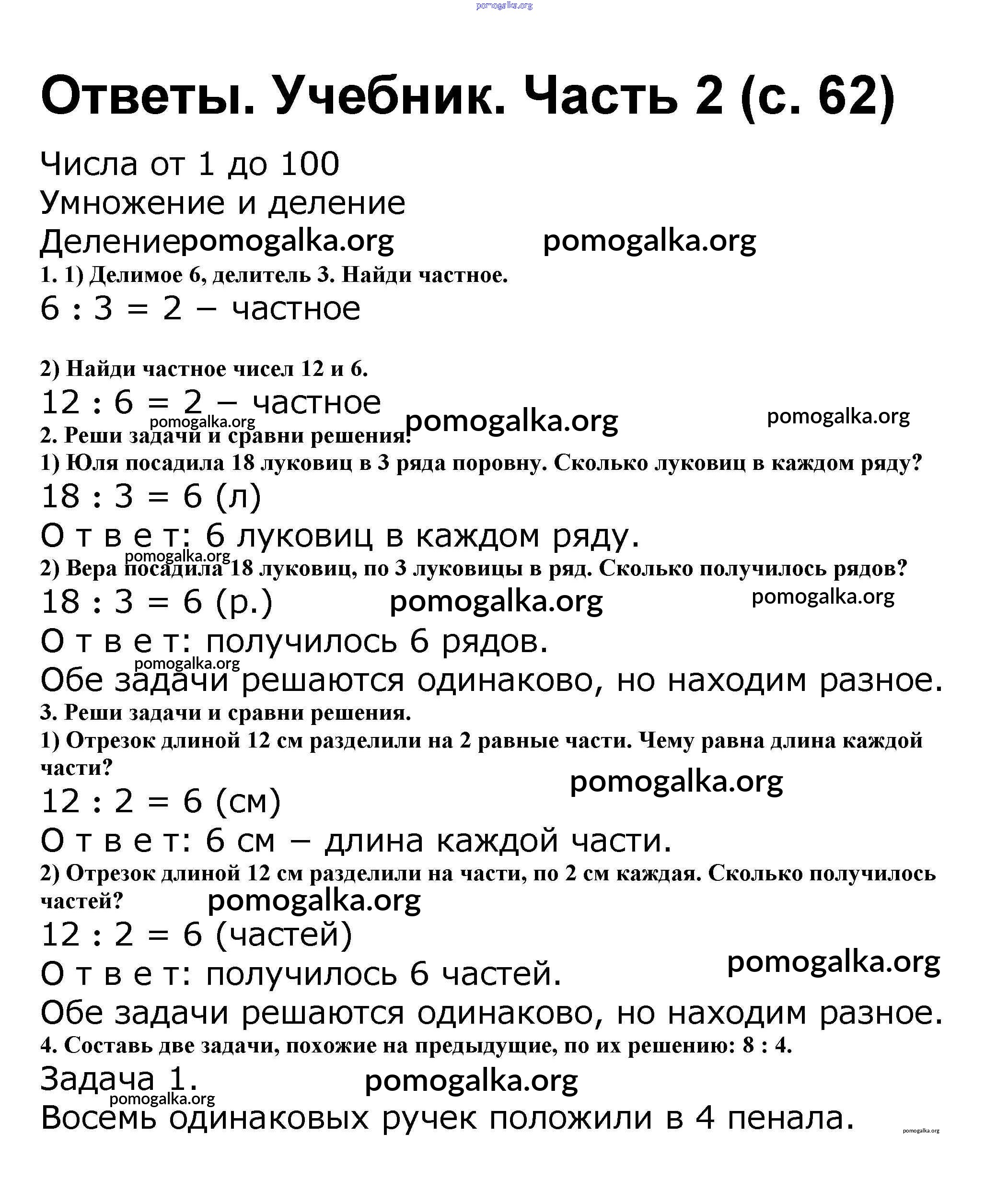 Готовые ответы - Математика 2 класс Моро М.И. - часть 2. страница 62