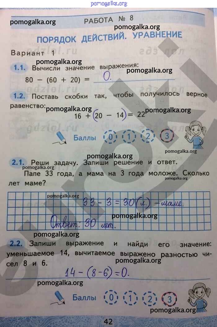 Готовые ответы - Математика 2 класс Зачетные работы Гусева Е.В. (к уч. Моро) - часть 1. страница 42
