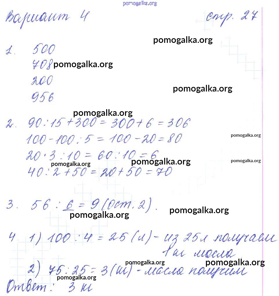 Готовые ответы - Математика 3 класс: контрольные работы Рудницкая В.Н. (к уч. Моро М.И.) - часть 2 27