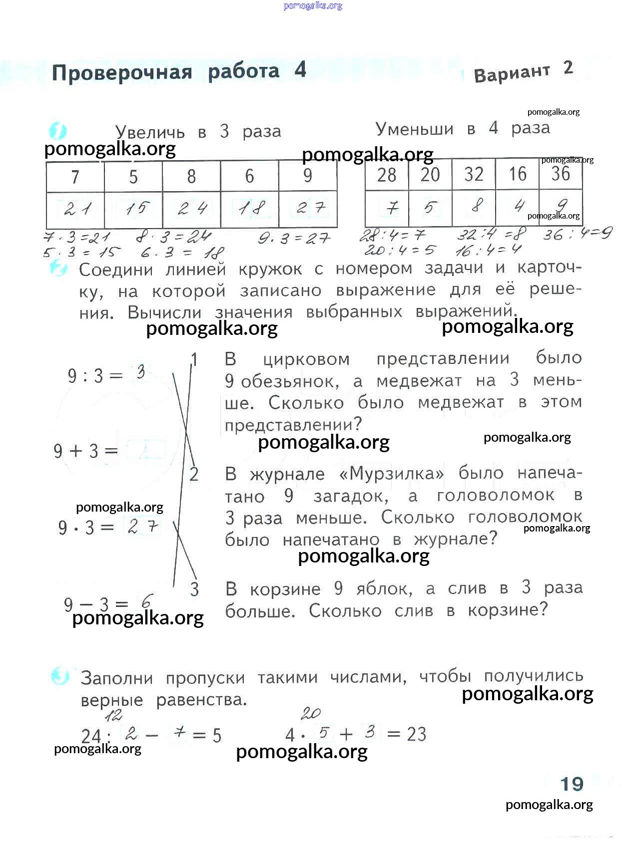 Готовые ответы - Математика 3 класс проверочные работы Волкова С.И. - страница 19