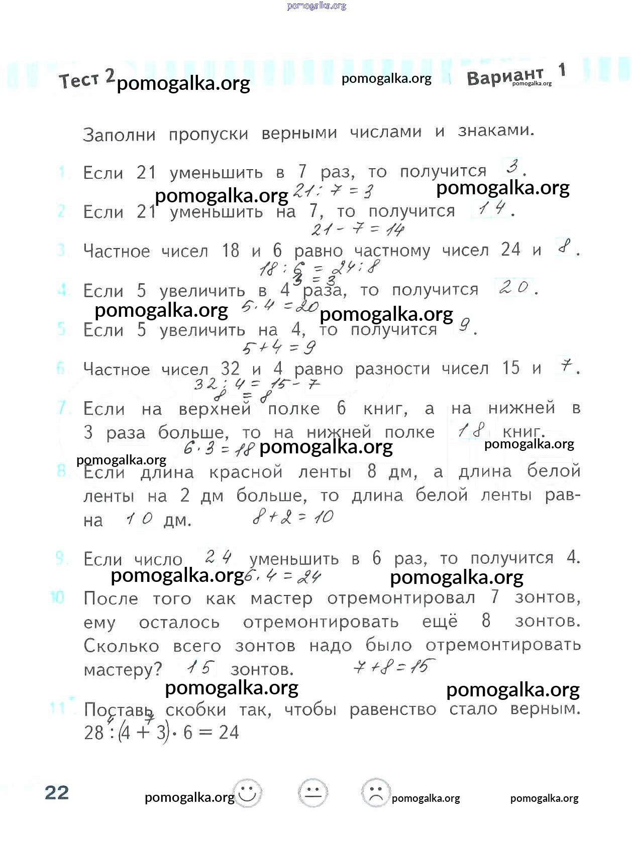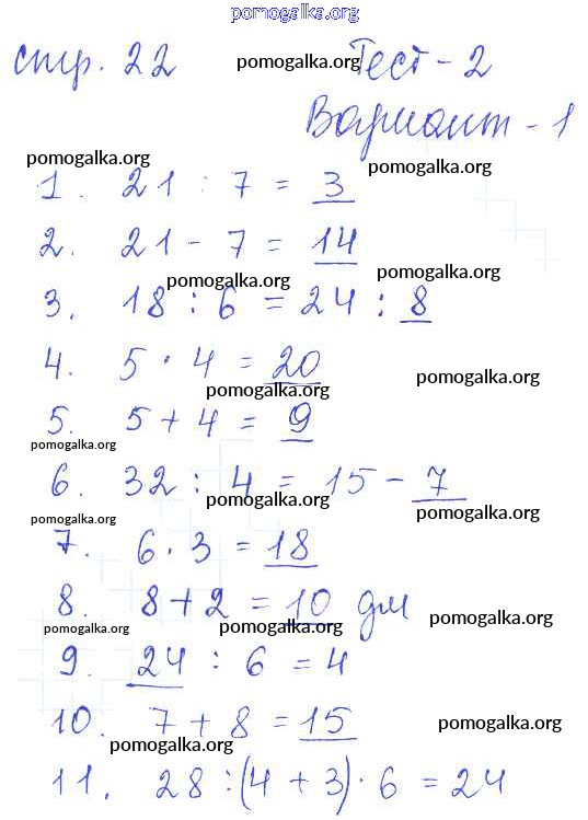 Готовые ответы - Математика 3 класс проверочные работы Волкова С.И. - страница 22