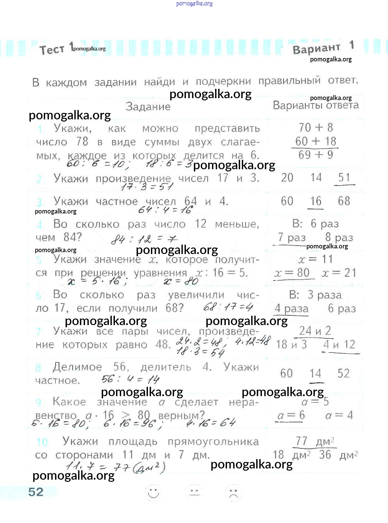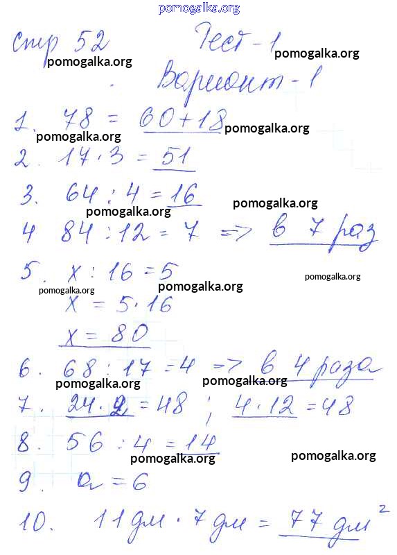 Готовые ответы - Математика 3 класс проверочные работы Волкова С.И. - страница 52