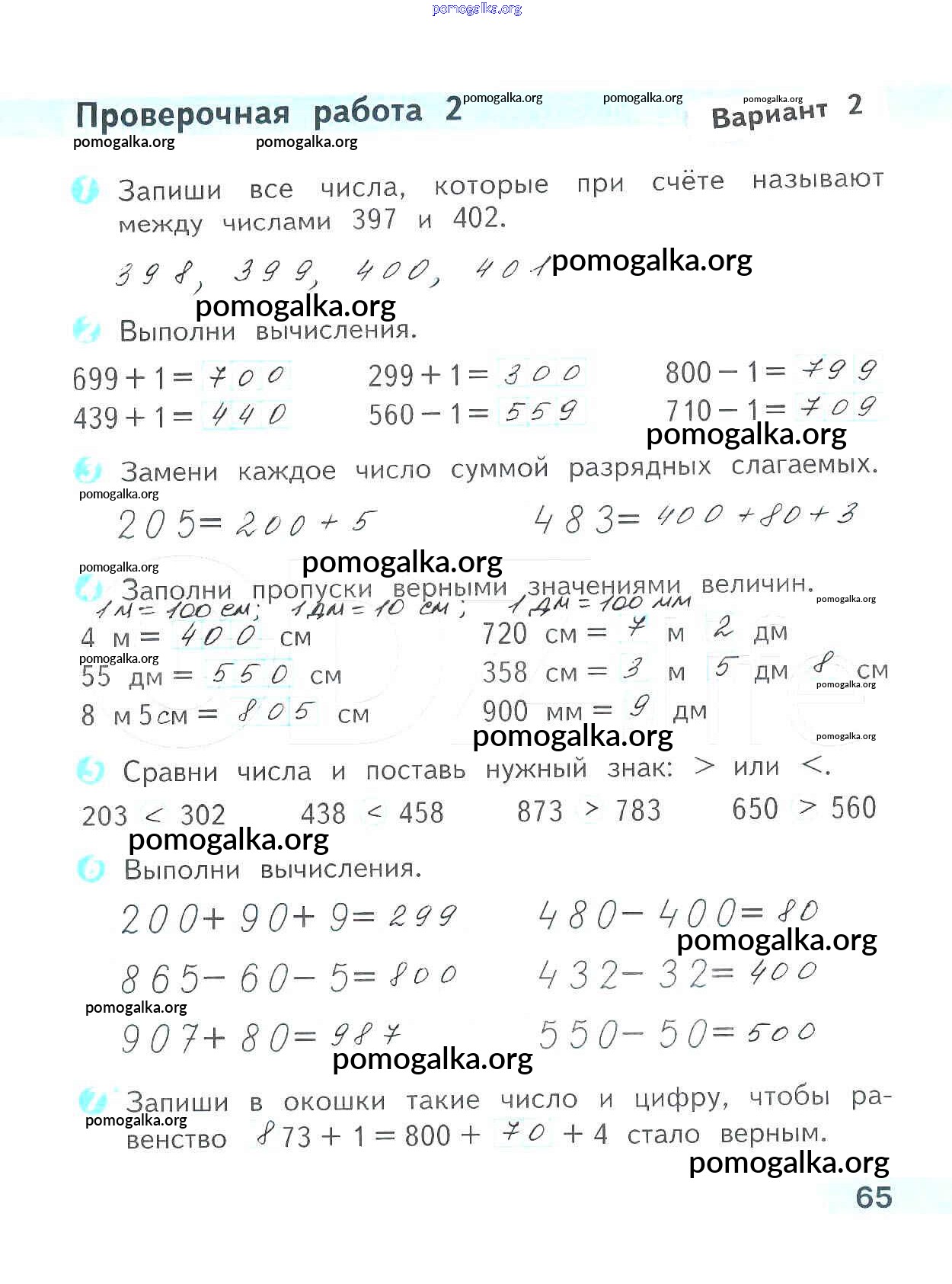 Готовые ответы - Математика 3 класс проверочные работы Волкова С.И. - страница 65