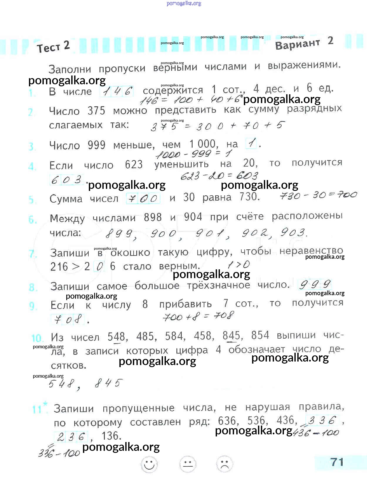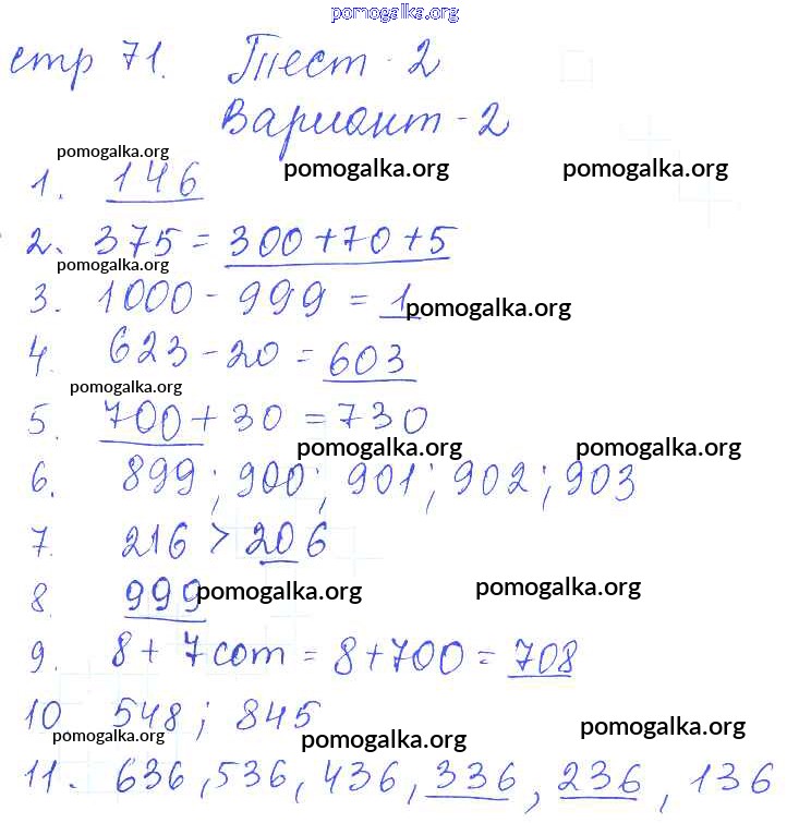 Готовые ответы - Математика 3 класс проверочные работы Волкова С.И. - страница 71