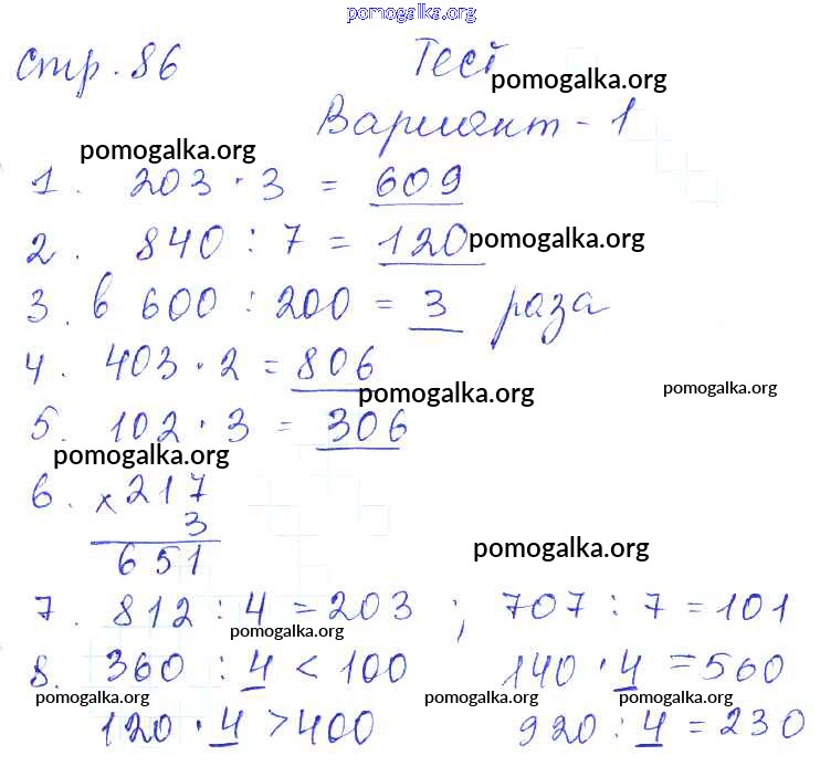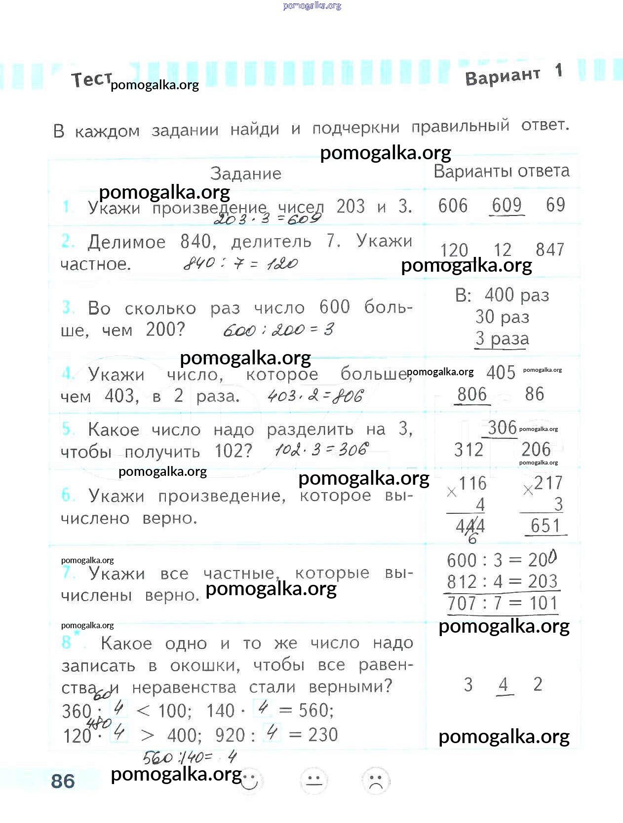 Готовые ответы - Математика 3 класс проверочные работы Волкова С.И. - страница 86