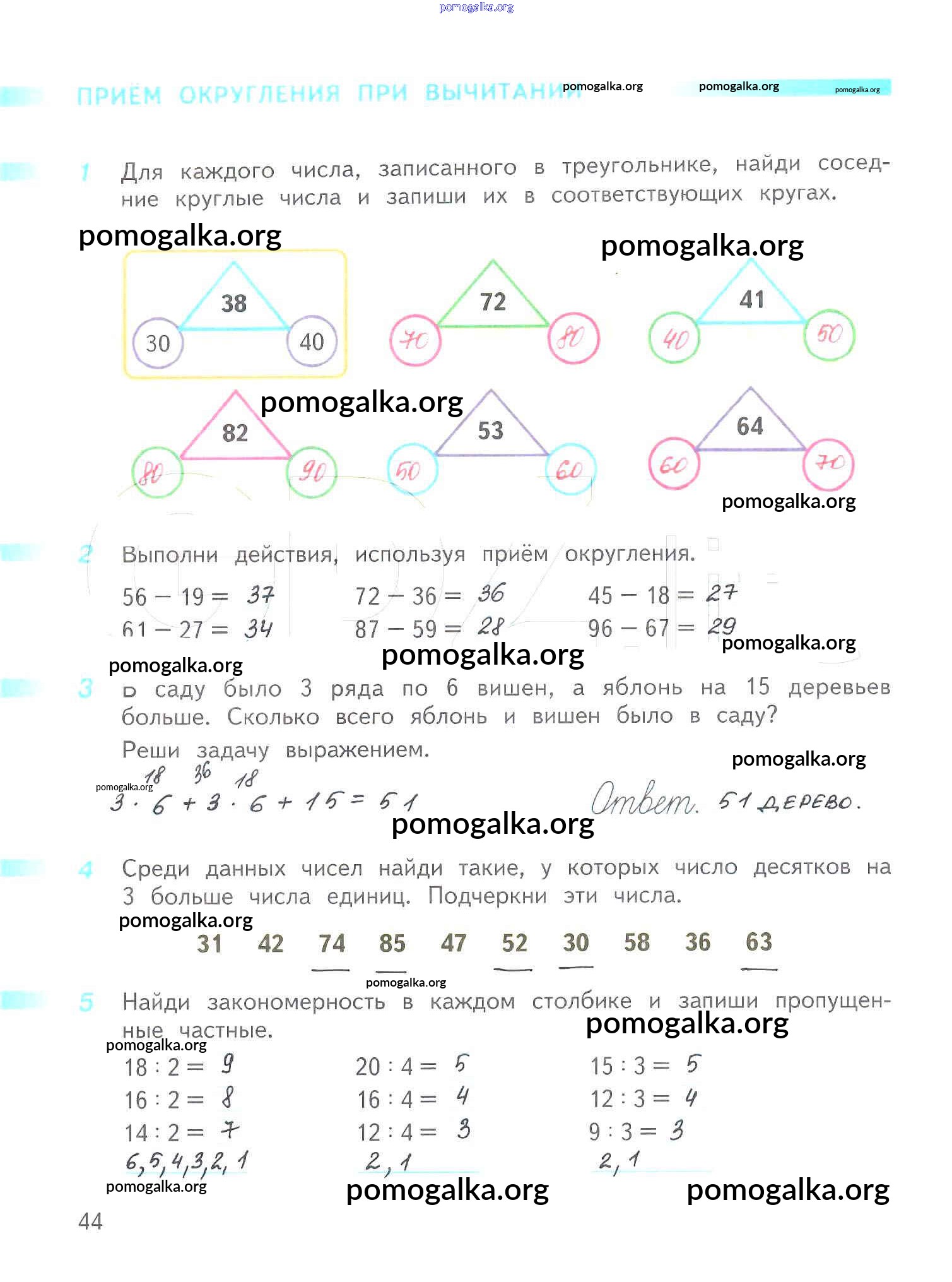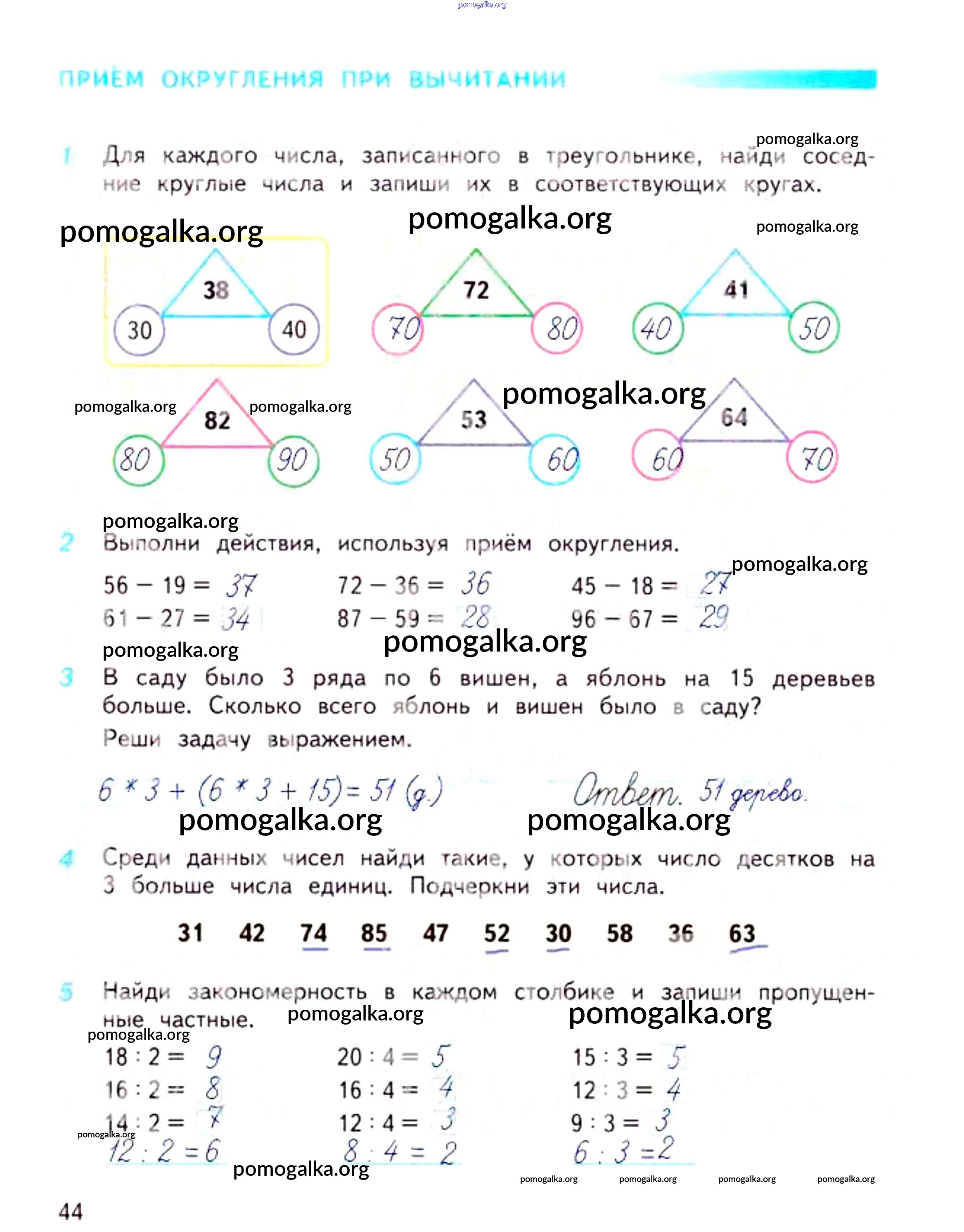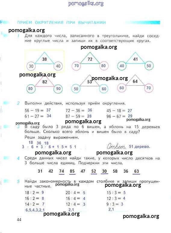 Готовые ответы - Математика 3 класс рабочая тетрадь Дорофеев Г.В. - часть 1. страница 44