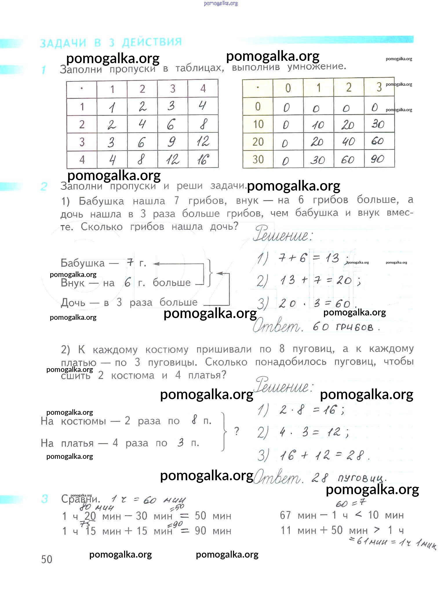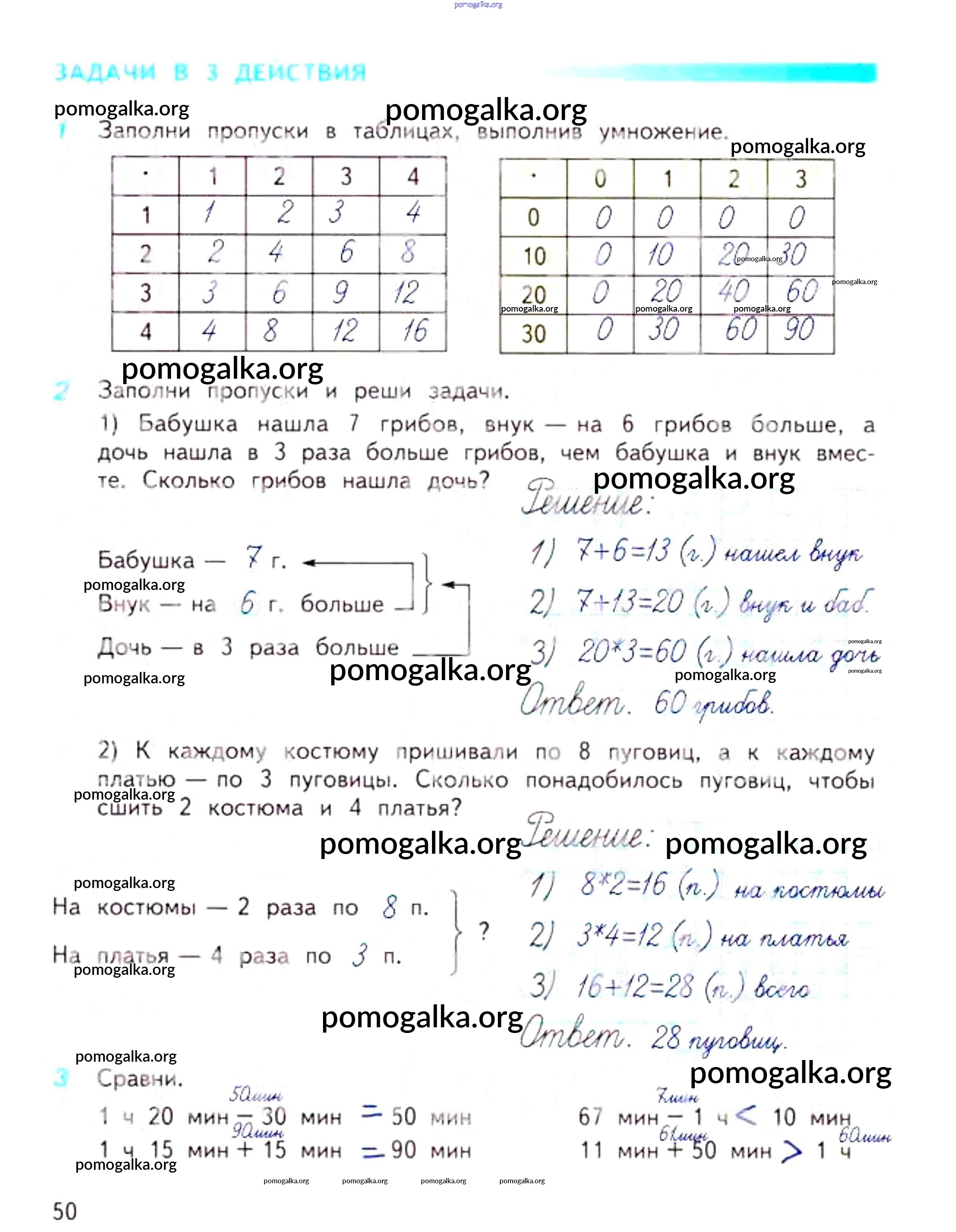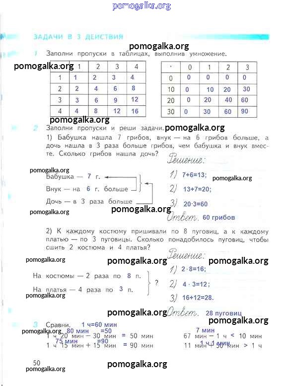Готовые ответы - Математика 3 класс рабочая тетрадь Дорофеев Г.В. - часть 1. страница 50
