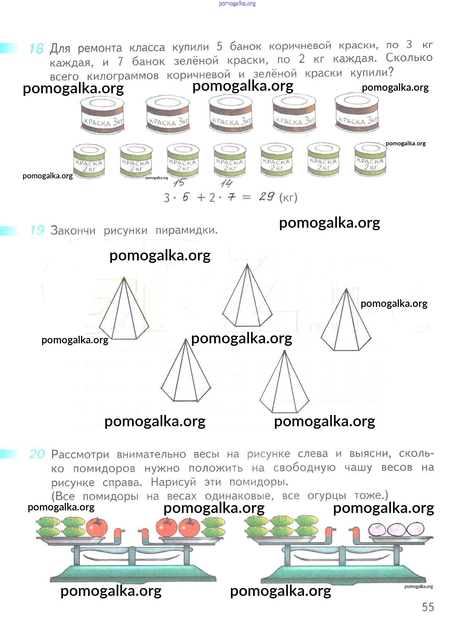 Готовые ответы - Математика 3 класс рабочая тетрадь Дорофеев Г.В. - часть 1. страница 55