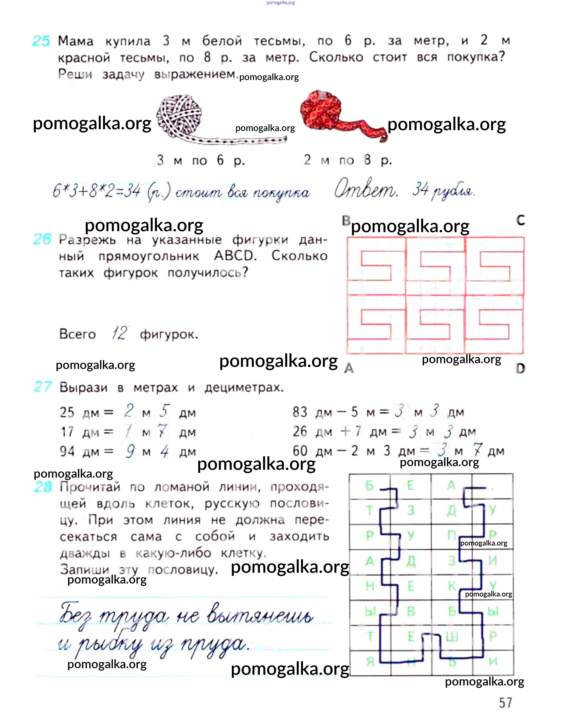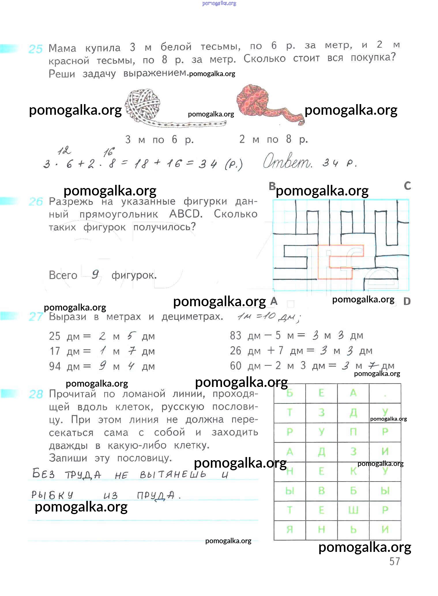 Готовые ответы - Математика 3 класс рабочая тетрадь Дорофеев Г.В. - часть 1. страница 57