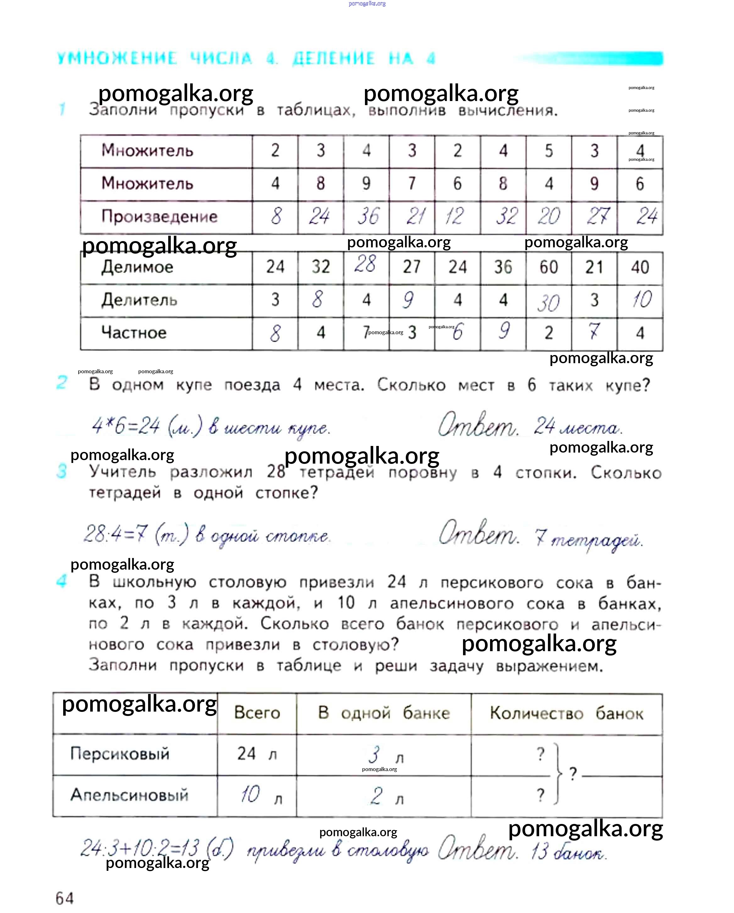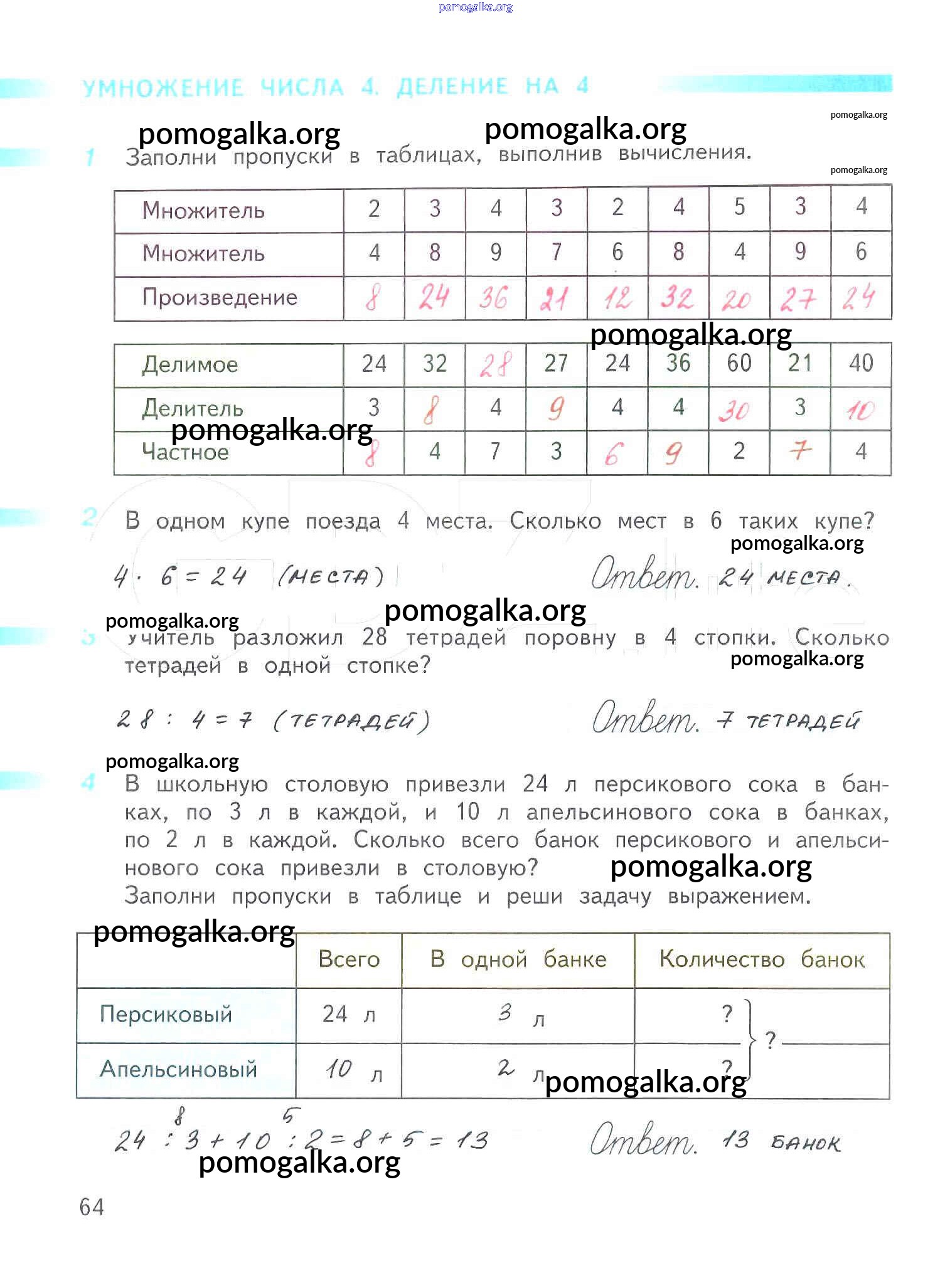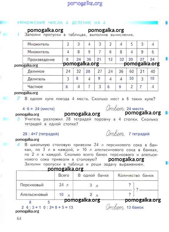 Готовые ответы - Математика 3 класс рабочая тетрадь Дорофеев Г.В. - часть 1. страница 64