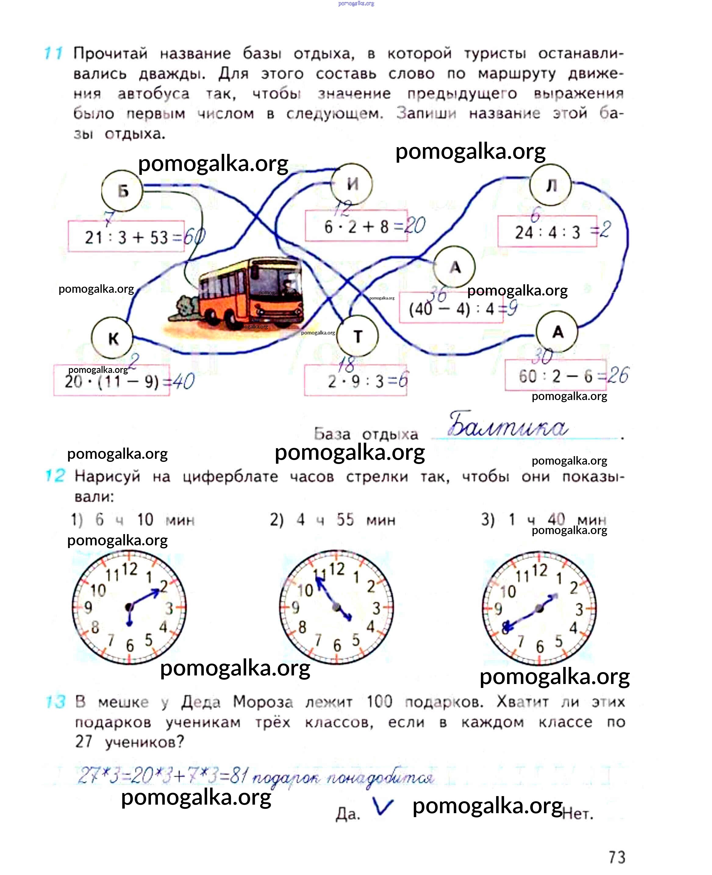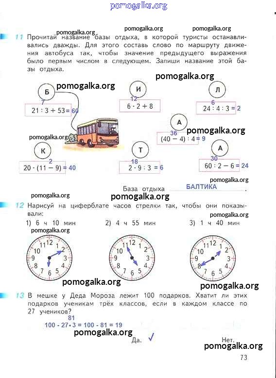 Готовые ответы - Математика 3 класс рабочая тетрадь Дорофеев Г.В. - часть 1. страница 73