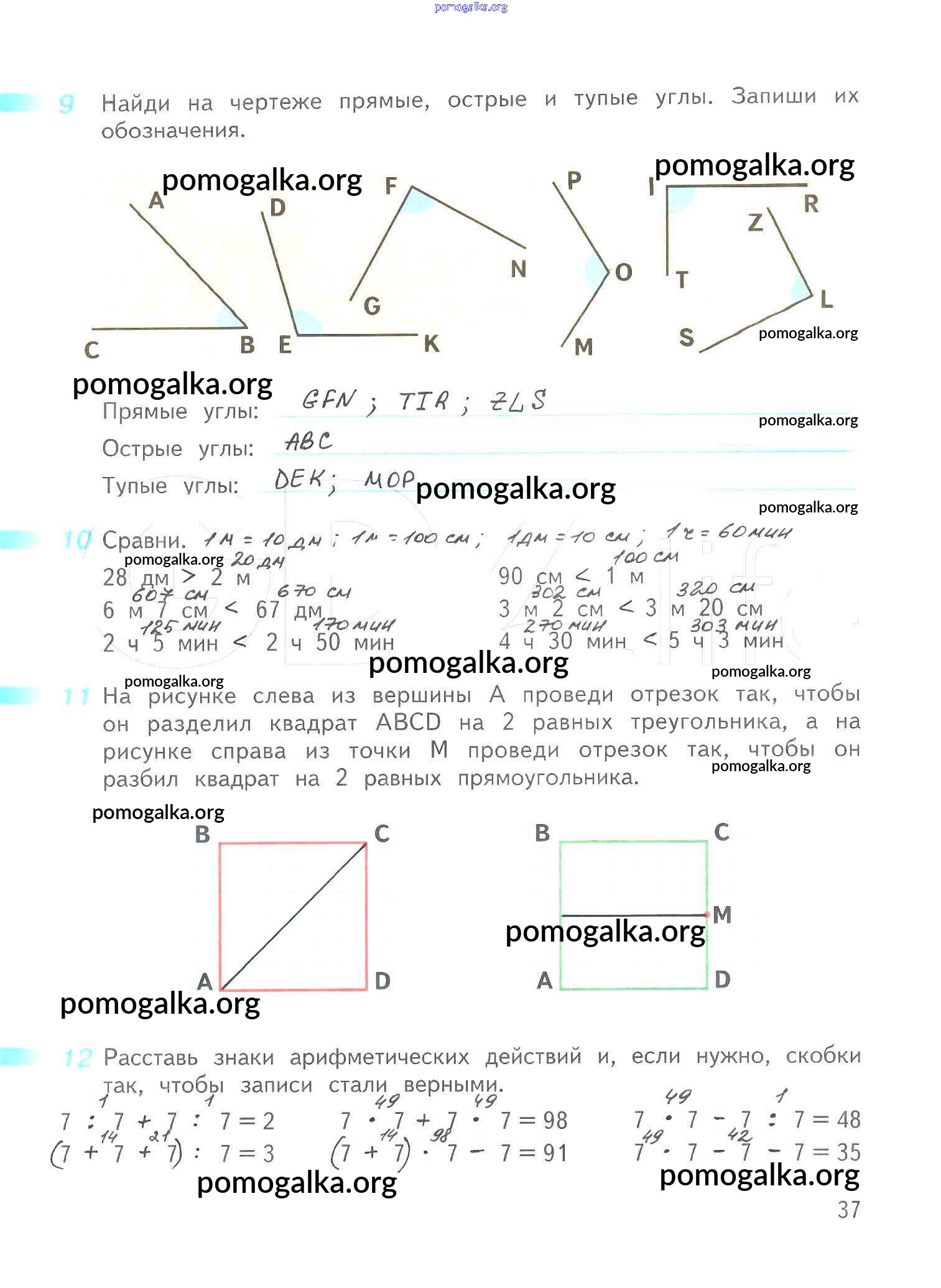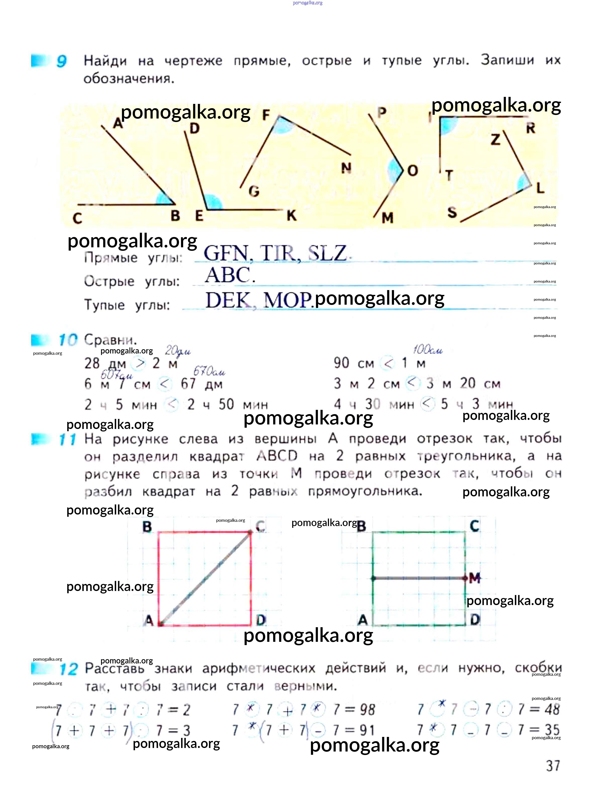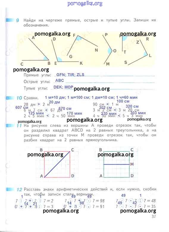 Готовые ответы - Математика 3 класс рабочая тетрадь Дорофеев Г.В. - часть 2. страница 37