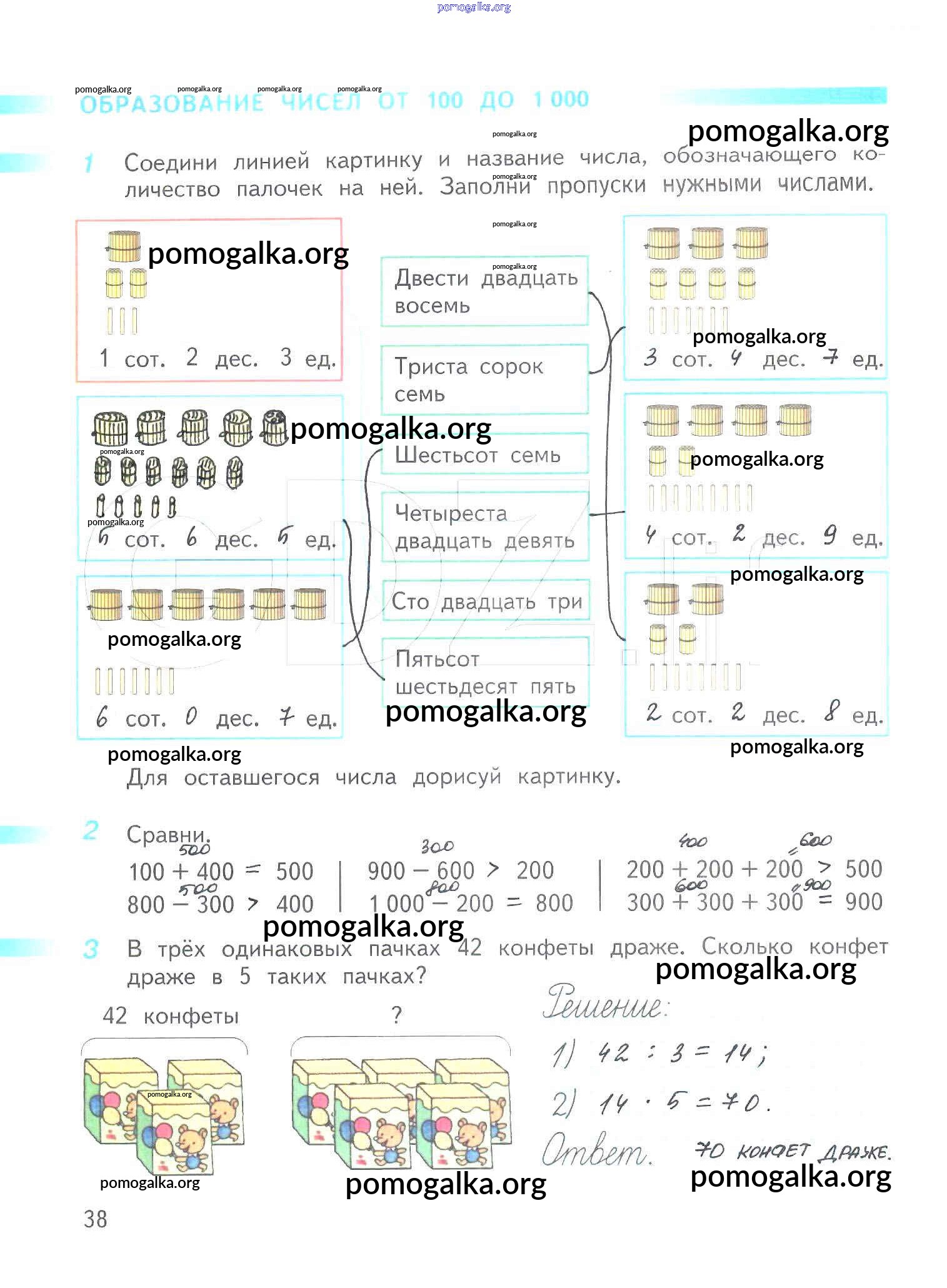 Готовые ответы - Математика 3 класс рабочая тетрадь Дорофеев Г.В. - часть 2. страница 38
