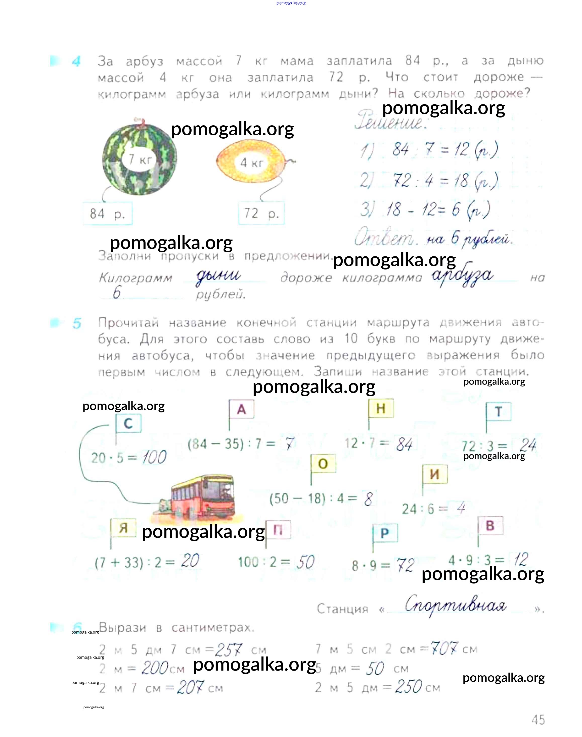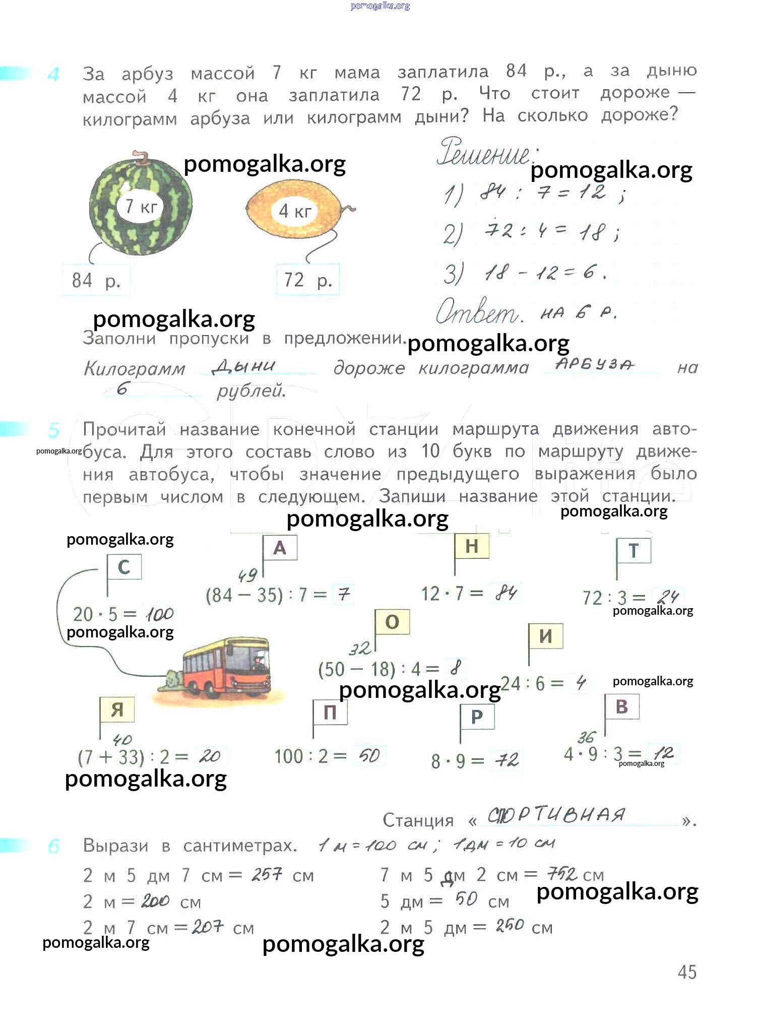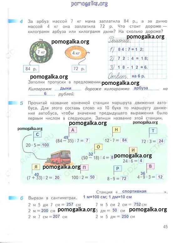 Готовые ответы - Математика 3 класс рабочая тетрадь Дорофеев Г.В. - часть 2. страница 45
