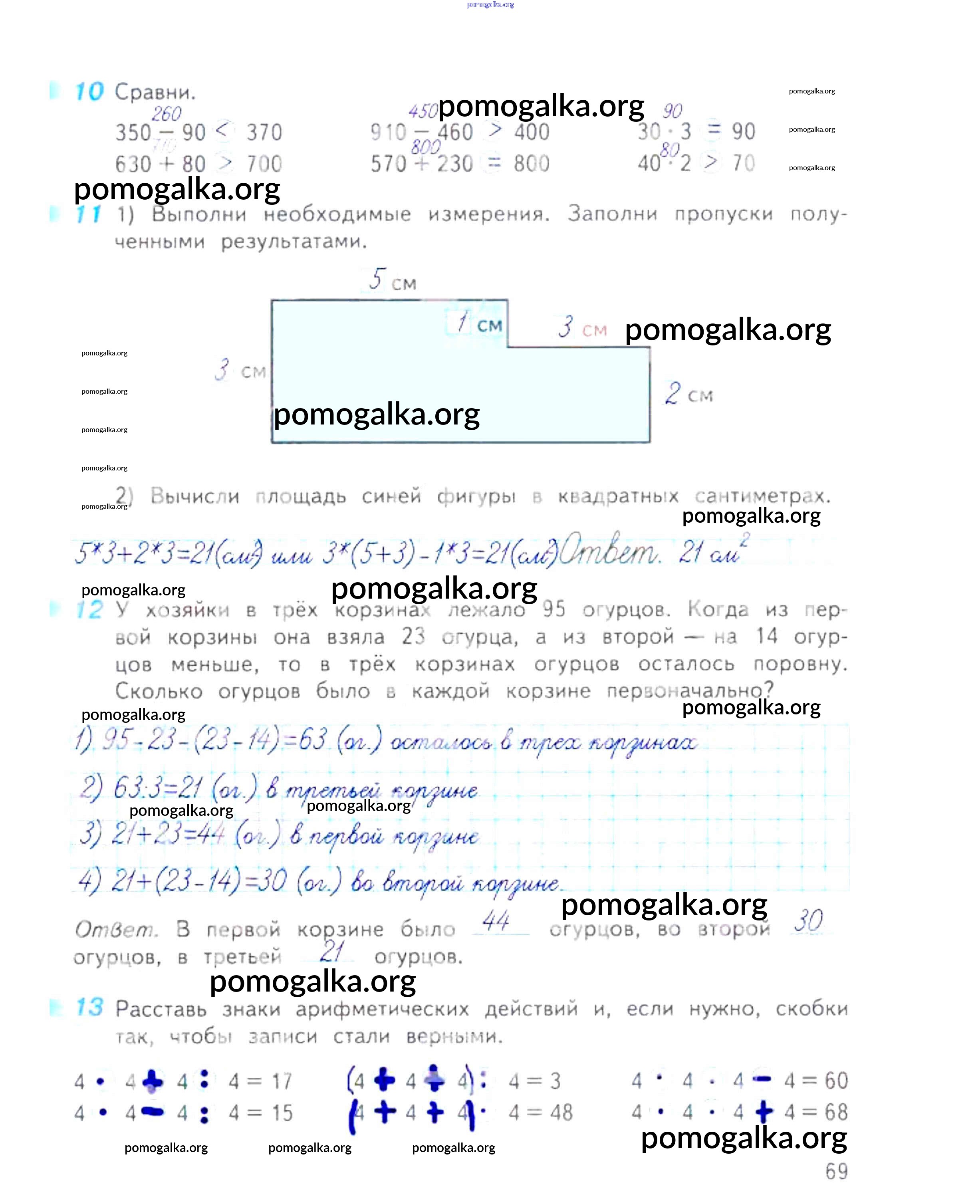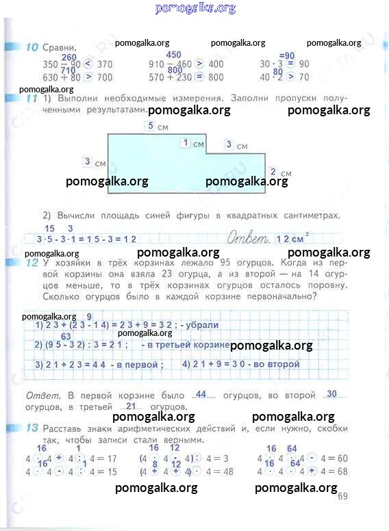 Готовые ответы - Математика 3 класс рабочая тетрадь Дорофеев Г.В. - часть 2. страница 69