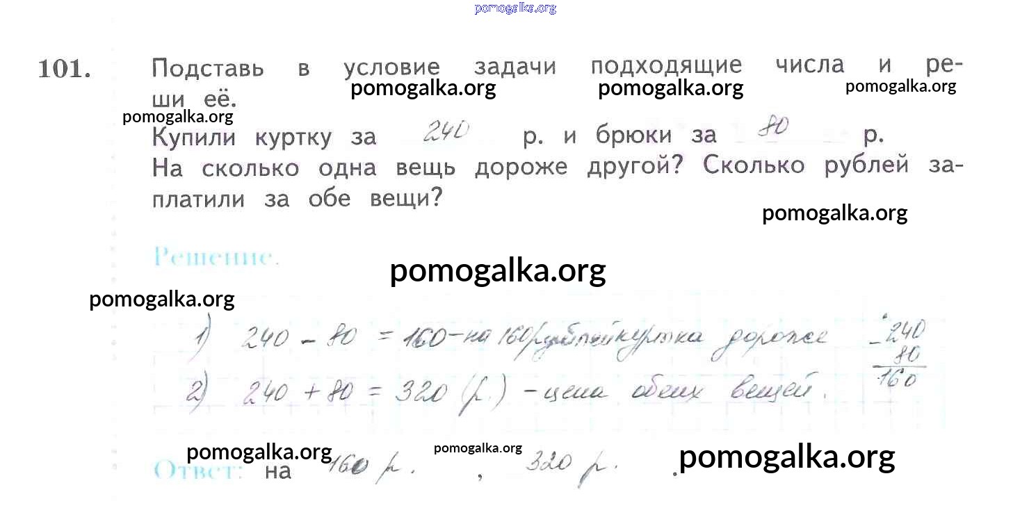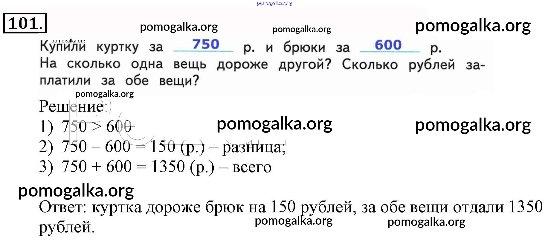 Готовые ответы - Математика 3 класс рабочая тетрадь Рудницкая В.Н. - часть 1 (упражнение) 101