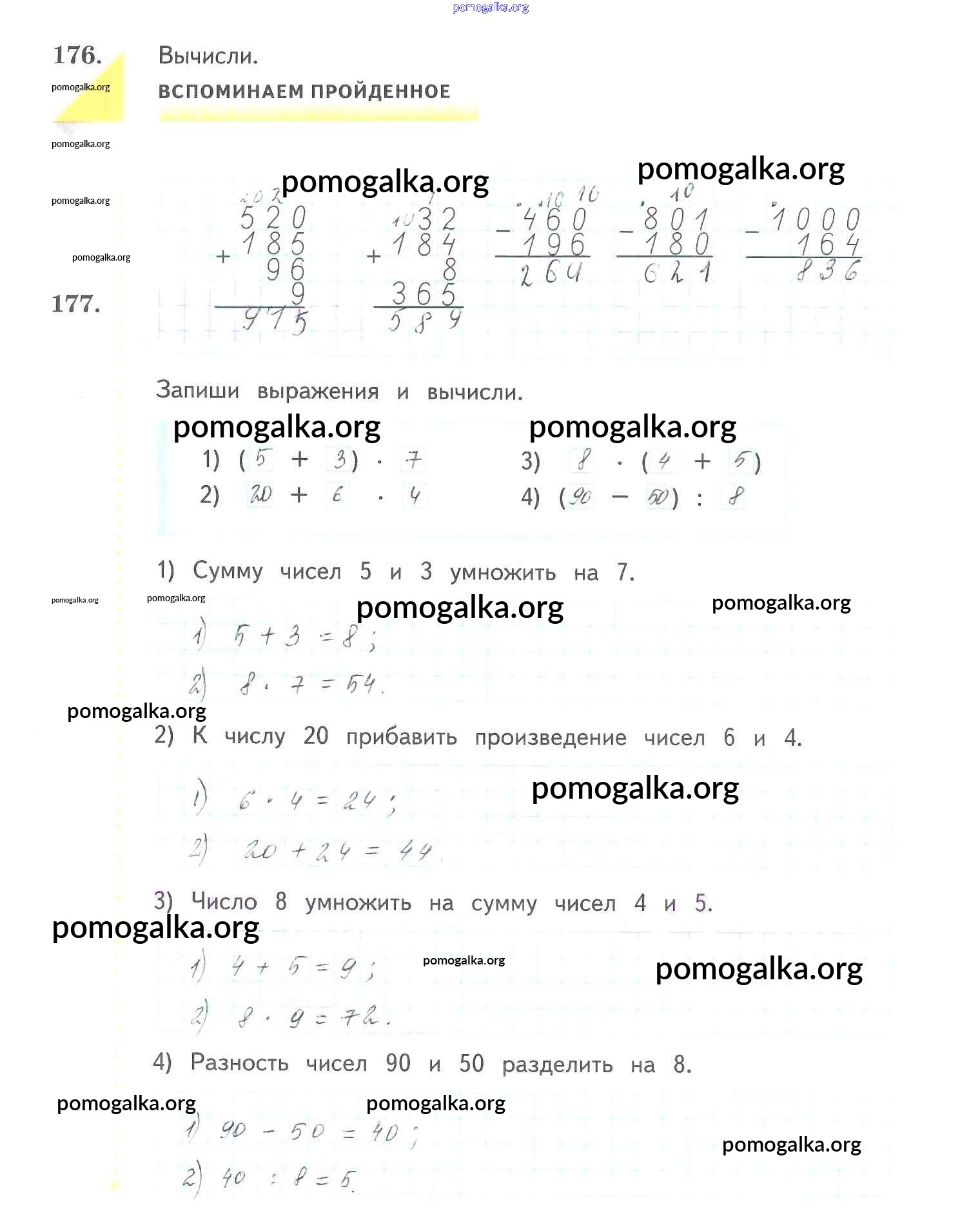 Готовые ответы - Математика 3 класс рабочая тетрадь Рудницкая В.Н. - часть 1 (упражнение) 176