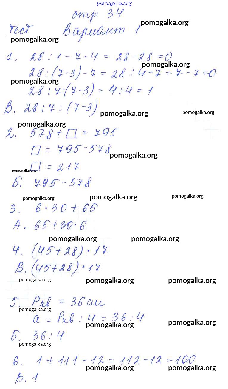 Готовые ответы - Математика 3 класс тесты и самостоятельные работы Нефёдова М.Г. - страница 34