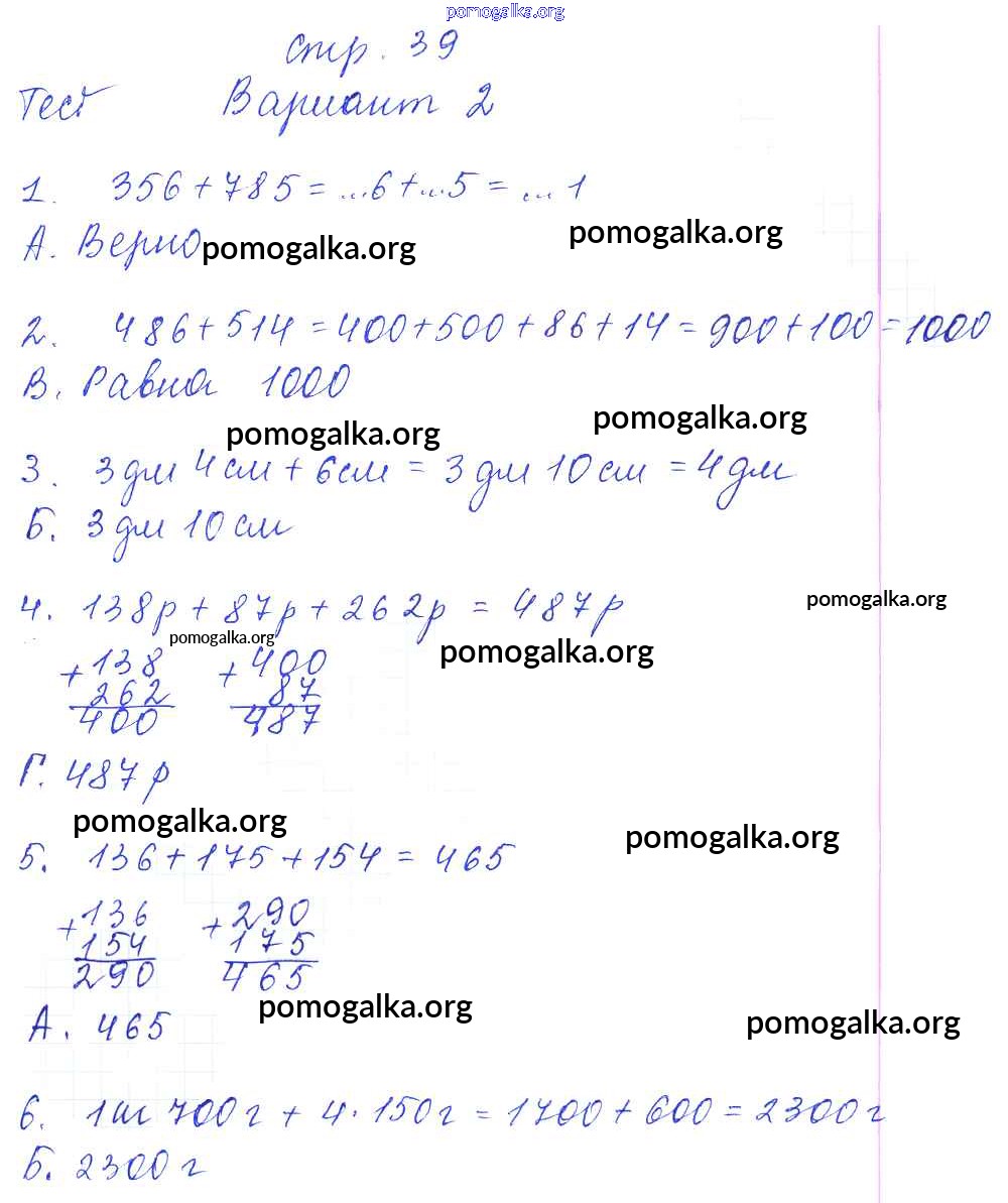 Готовые ответы - Математика 3 класс тесты и самостоятельные работы Нефёдова М.Г. - страница 39