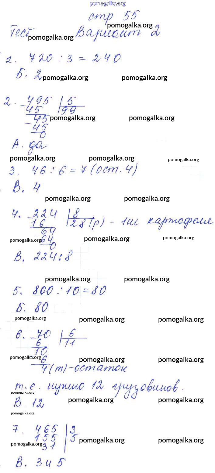 Готовые ответы - Математика 3 класс тесты и самостоятельные работы Нефёдова М.Г. - страница 55