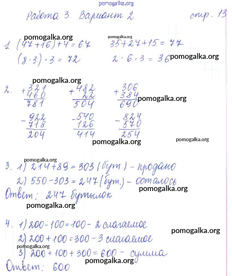 Готовые ответы - Математика 3 класс тетрадь для контрольных работ Рудницкая В.Н. - страница 13