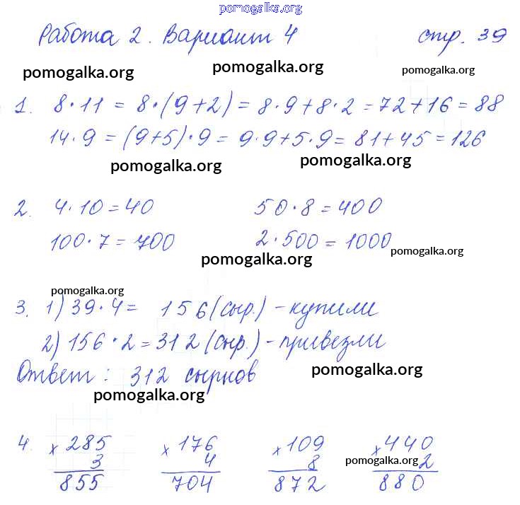 Готовые ответы - Математика 3 класс тетрадь для контрольных работ Рудницкая В.Н. - страница 39