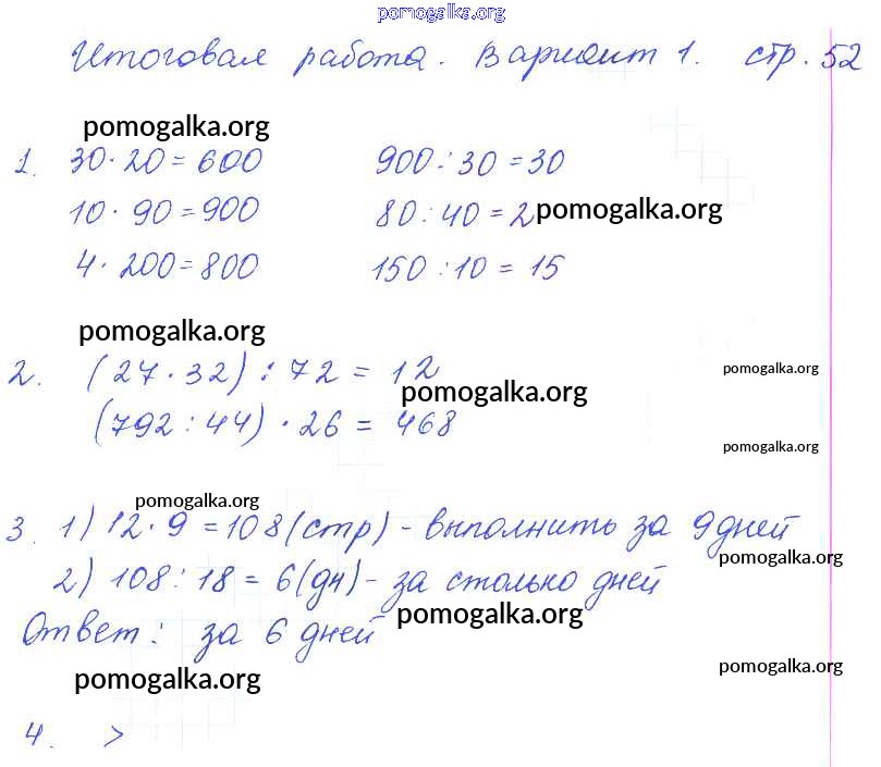 Готовые ответы - Математика 3 класс тетрадь для контрольных работ Рудницкая В.Н. - страница 52