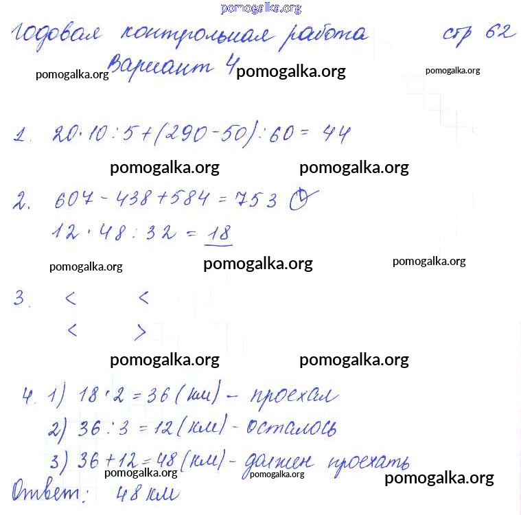 Готовые ответы - Математика 3 класс тетрадь для контрольных работ Рудницкая В.Н. - страница 62