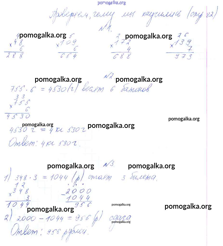 Готовые ответы - Математика 3 класс Башмаков М.И. - проверяем чему научились часть 2 стр. 82