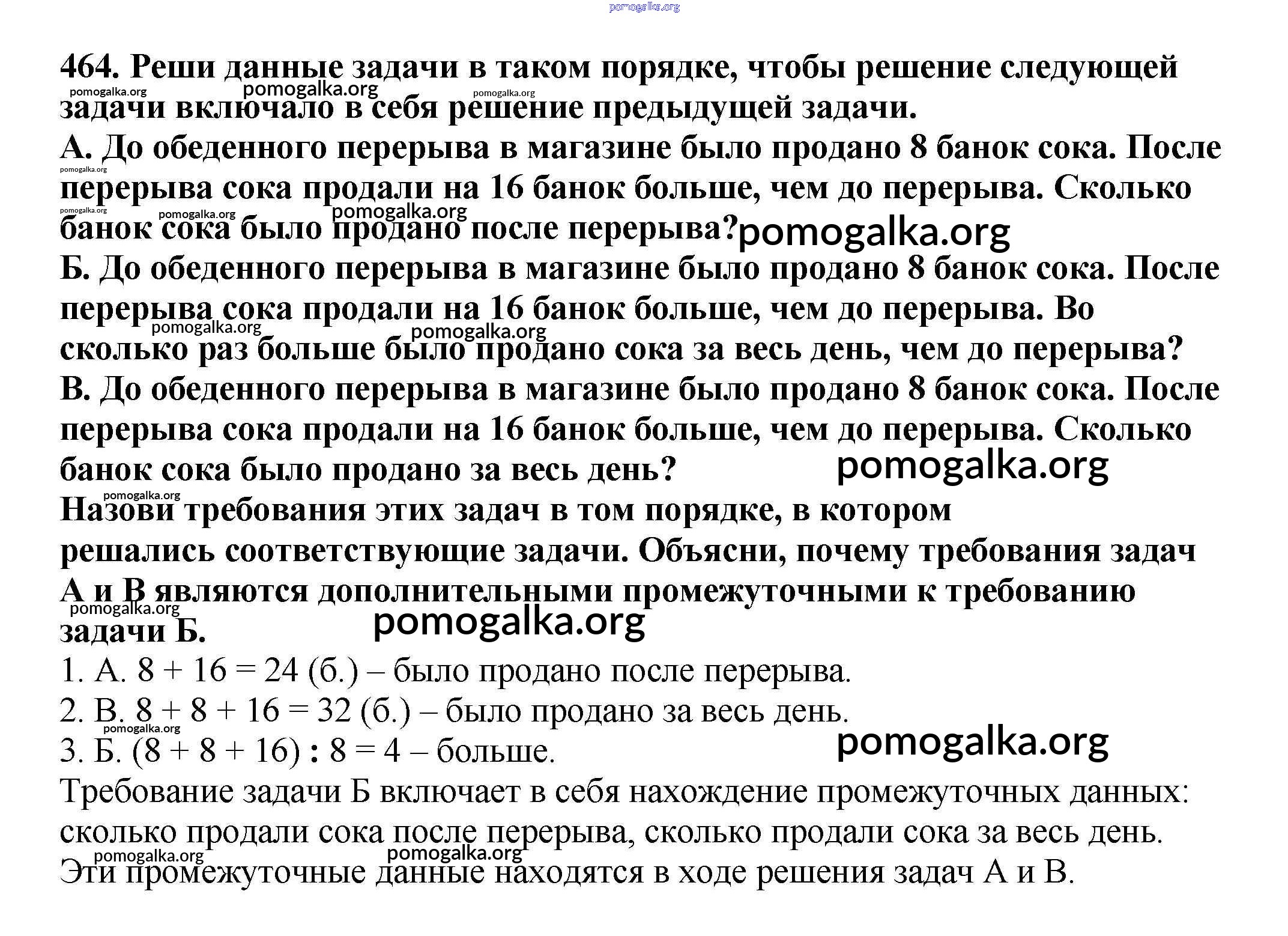 Готовые ответы - Математика 3 класс Чекин А.Л. - часть 1 464