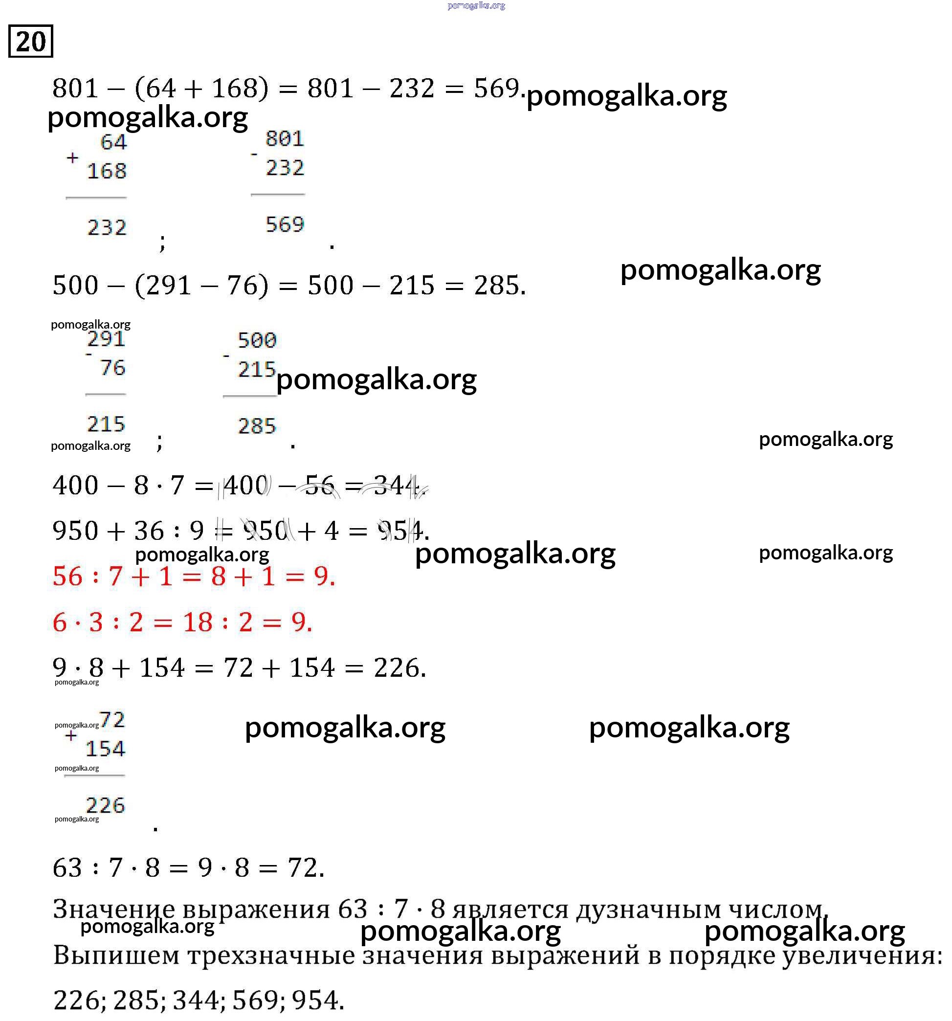 Порядок выполнения действий в выражениях со скобками. №1-32