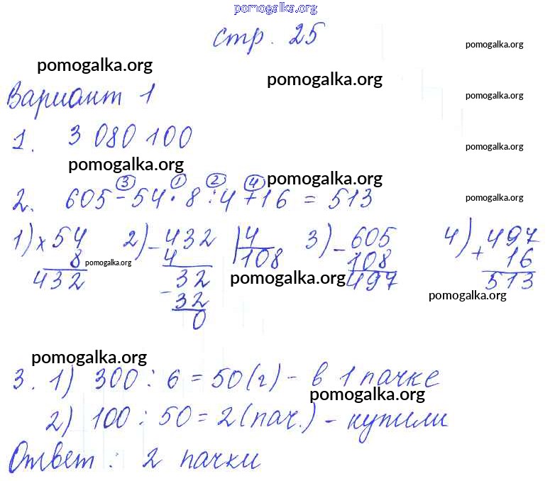 Готовые ответы - Математика 4 класс контрольные работы Рудницкая В.Н. (к уч. Моро) - часть 1. страница 25