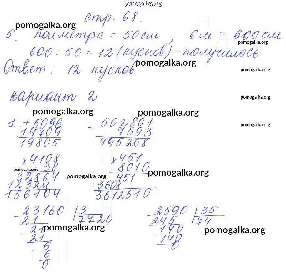 Готовые ответы - Математика 4 класс контрольные работы Рудницкая В.Н. (к уч. Моро) - часть 2. страница 68