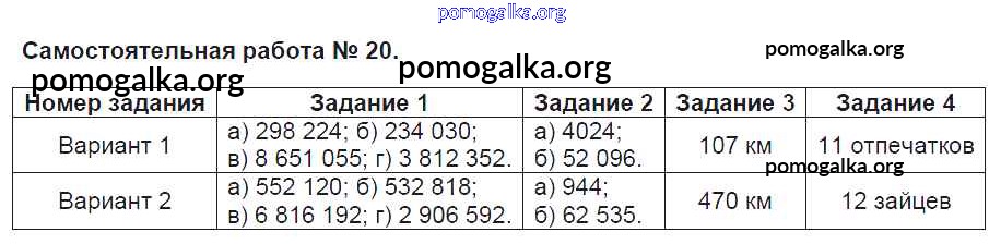 Готовые ответы - Математика 4 класс контрольно-измерительные материалы Ситникова Т.Н. - самостоятельная работа 20