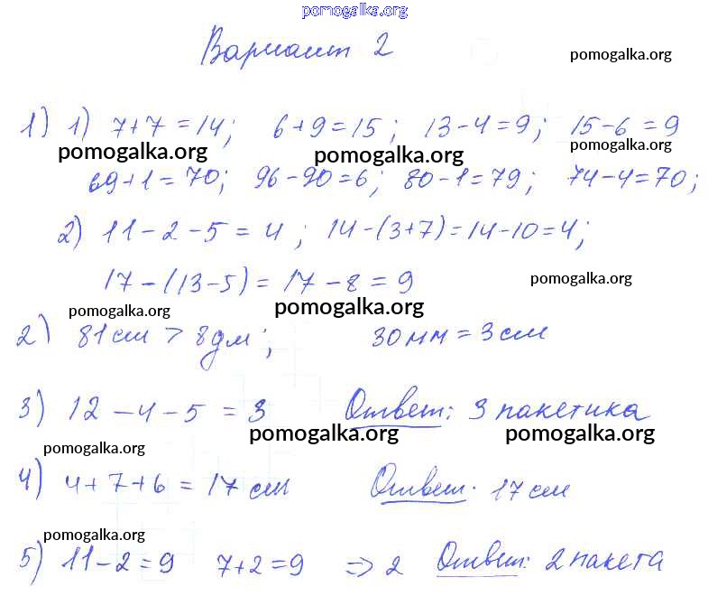 Готовые ответы - Математика 1-4 классы контрольные работы Волкова С.И. - тема «Таблица сложения однозначных чисел и соответствующие случаи вычитания» стр. 17 2 класс Вариант 2