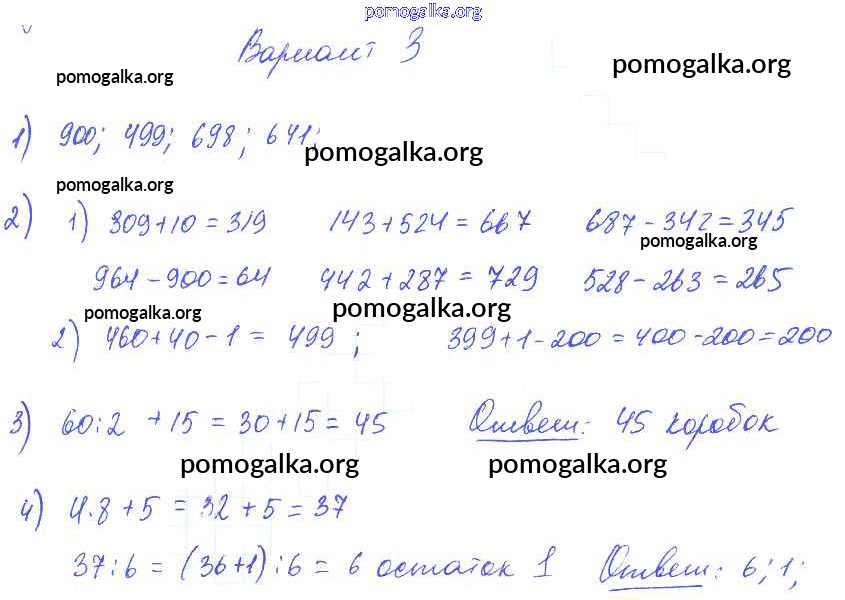 Готовые ответы - Математика 1-4 классы контрольные работы Волкова С.И. - итоговые контрольные работы за 3 класс. контрольная работа 2 3 класс Вариант 3