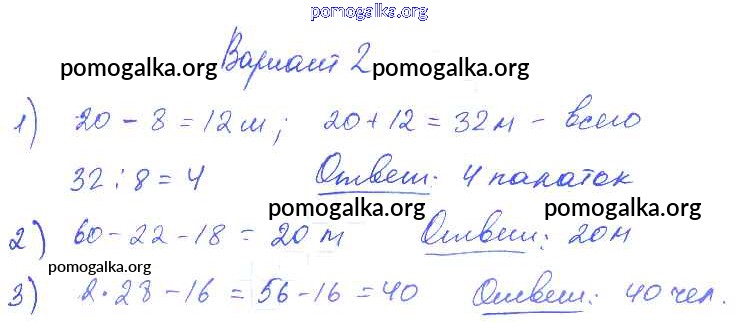 Готовые ответы - Математика 1-4 классы контрольные работы Волкова С.И. - итоговая контрольная работа за 3 четверть. контрольная работа 2 3 класс Вариант 2