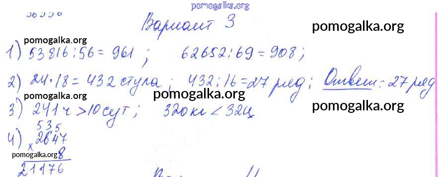 Готовые ответы - Математика 1-4 классы контрольные работы Волкова С.И. - итоговые контрольные работы за курс начальной школы. контрольная работа 2 4 класс Вариант 3