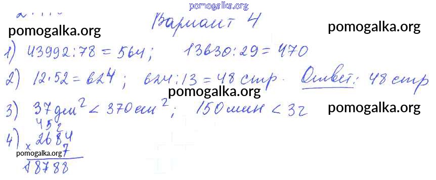 Готовые ответы - Математика 1-4 классы контрольные работы Волкова С.И. - итоговые контрольные работы за курс начальной школы. контрольная работа 2 4 класс Вариант 4