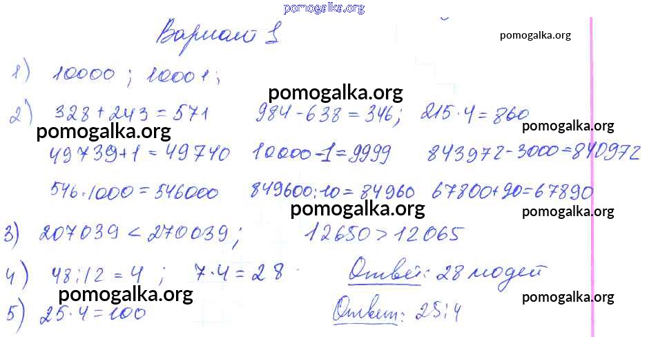Готовые ответы - Математика 1-4 классы контрольные работы Волкова С.И. - итоговая контрольная работа за 1 четверть 4 класс Вариант 1