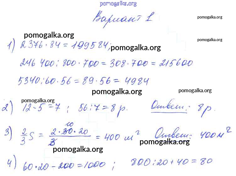 Готовые ответы - Математика 1-4 классы контрольные работы Волкова С.И. - темы «Скорость, время, пройденное расстояние» и «Умножение на числа, оканчивающиеся нулями» стр. 65 4 класс Вариант 1