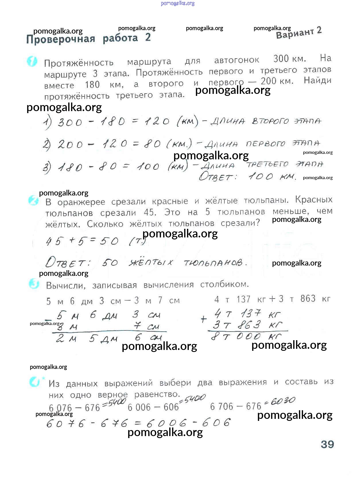 Готовые ответы - Математика 4 класс проверочные работы Волкова С.И. - страница 39